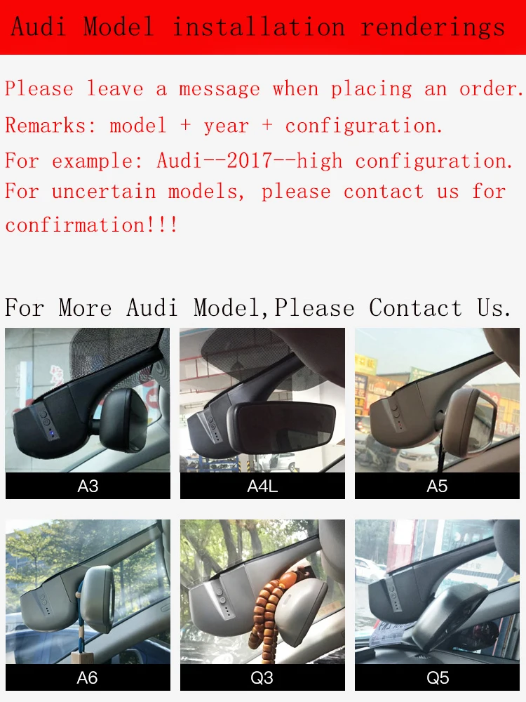 1. Поскольку эта запись вождения относится к особому стилю, он подходит для автомобилей с дворниками, пожалуйста, проверьте, подходит ли она для установки вашей модели, если вы не уверены, пожалуйста, проконсультируйтесь с нашим персоналом по обслуживанию клиентов, мы ответим на вашу информацию с профессиональной точки зрения (пожалуйста, добавьте вашу информацию при консультации: Сколько стоит модель и год + фото кронштейна оригинального места установки автомобиля) спасибо за сотрудничество!2. Потому что этот продукт предназначен, поэтому, чтобы избежать установки или других проблем, пожалуйста, обязательно сообщите мне для вашего автомобиля, в каком году и какая модель, И, пожалуйста, сделайте фотографию зеркала заднего вида и отправьте его в службу поддержки клиентов