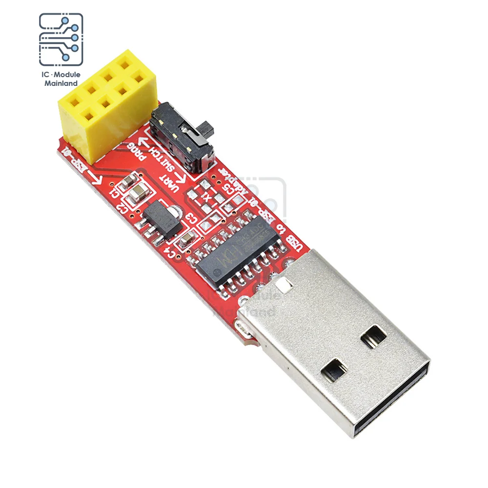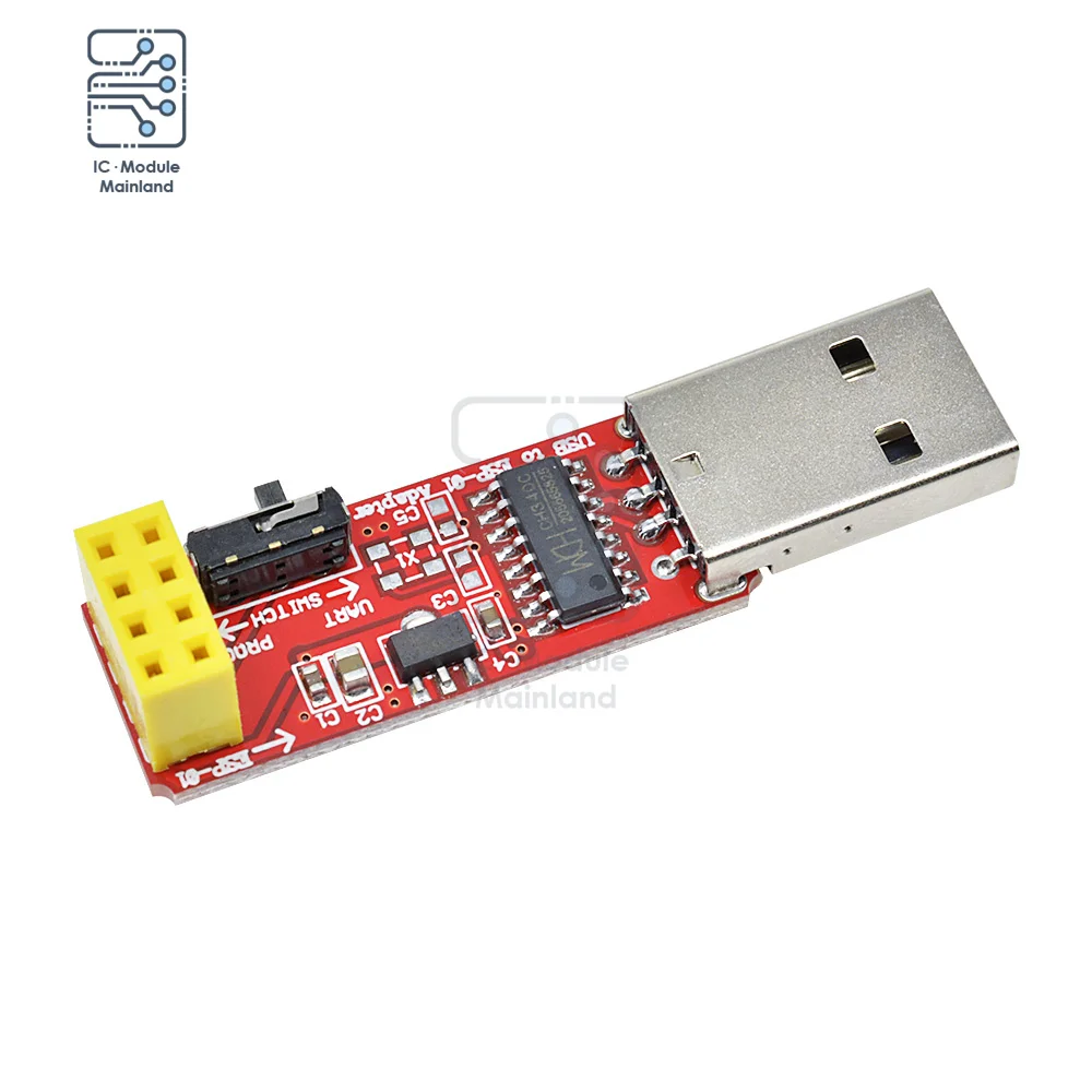 Модуль адаптера USB-ESP-01 имеет встроенный драйвер CH340G USB-TTL, поэтому вы можете легко использовать компьютер для функциональной отладки ESP-01. ESP-01 последовательный wifi модуль может быть непосредственно подключен к желтому штыревому заголовку без каких-либо проводов подключения.