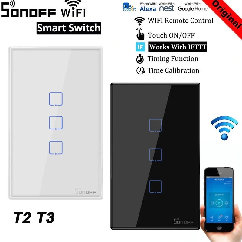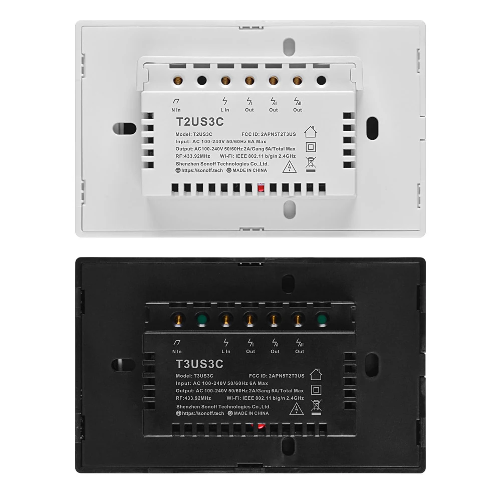 Настенный сенсорный высветильник ель Sonoff T2 T3, США, Wi-Fi, 1, 2, 3 клавиши, беспроводной, 433 МГц, RF, зеркальная панель, работает с Alexa Google