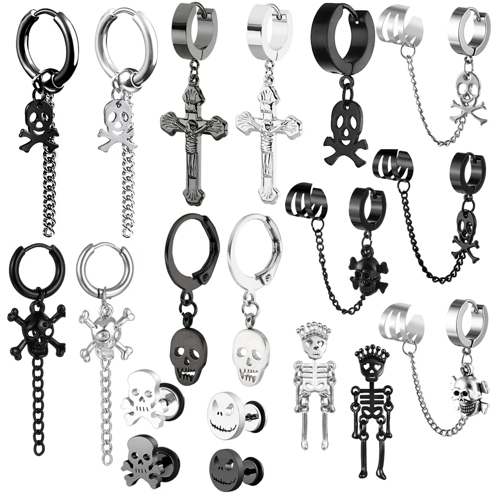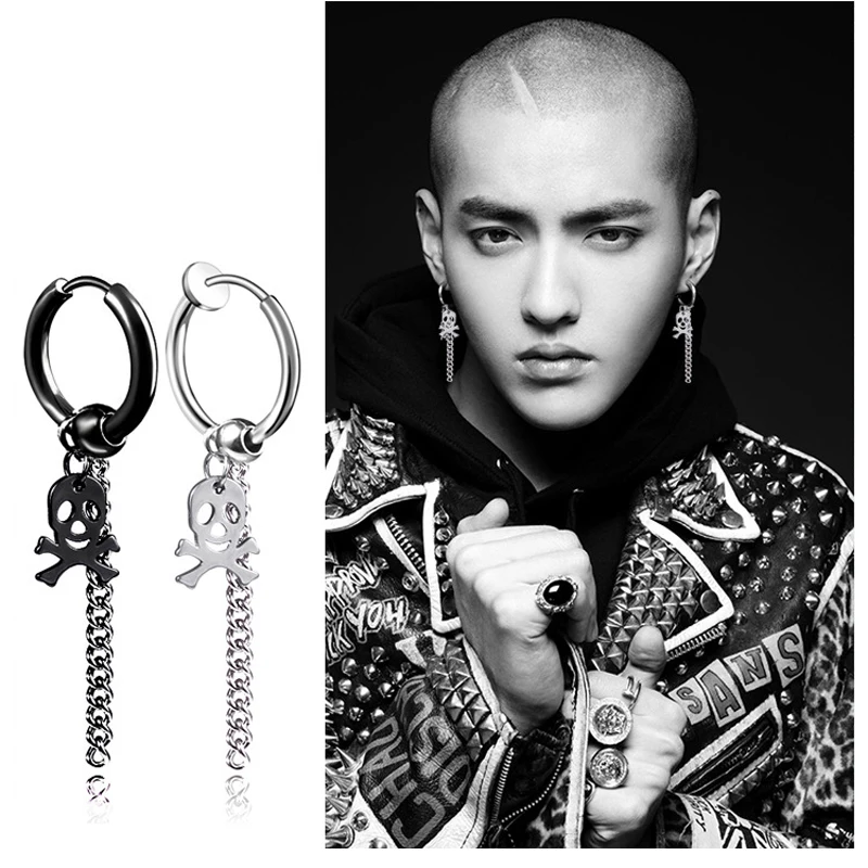 Круглые серьги в стиле панк-рок, 1 шт., модное кольцо для ушей из нержавеющей стали, в виде черепа, для мужчин и женщин, пирсинг для ушей Pop