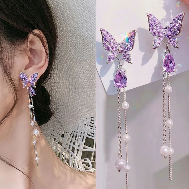 Модные длинные жемчужные серьги, красочные бабочки, кисточки для женщин, эстетическое ювелирное изделие для женщин, модные серьги, аксессуары