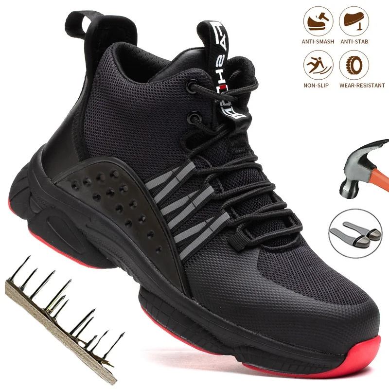 Ботинки мужские со стальным носком, дышащие Нескользящие рабочие ботинки, строительная обувь, легкие безопасные кроссовки