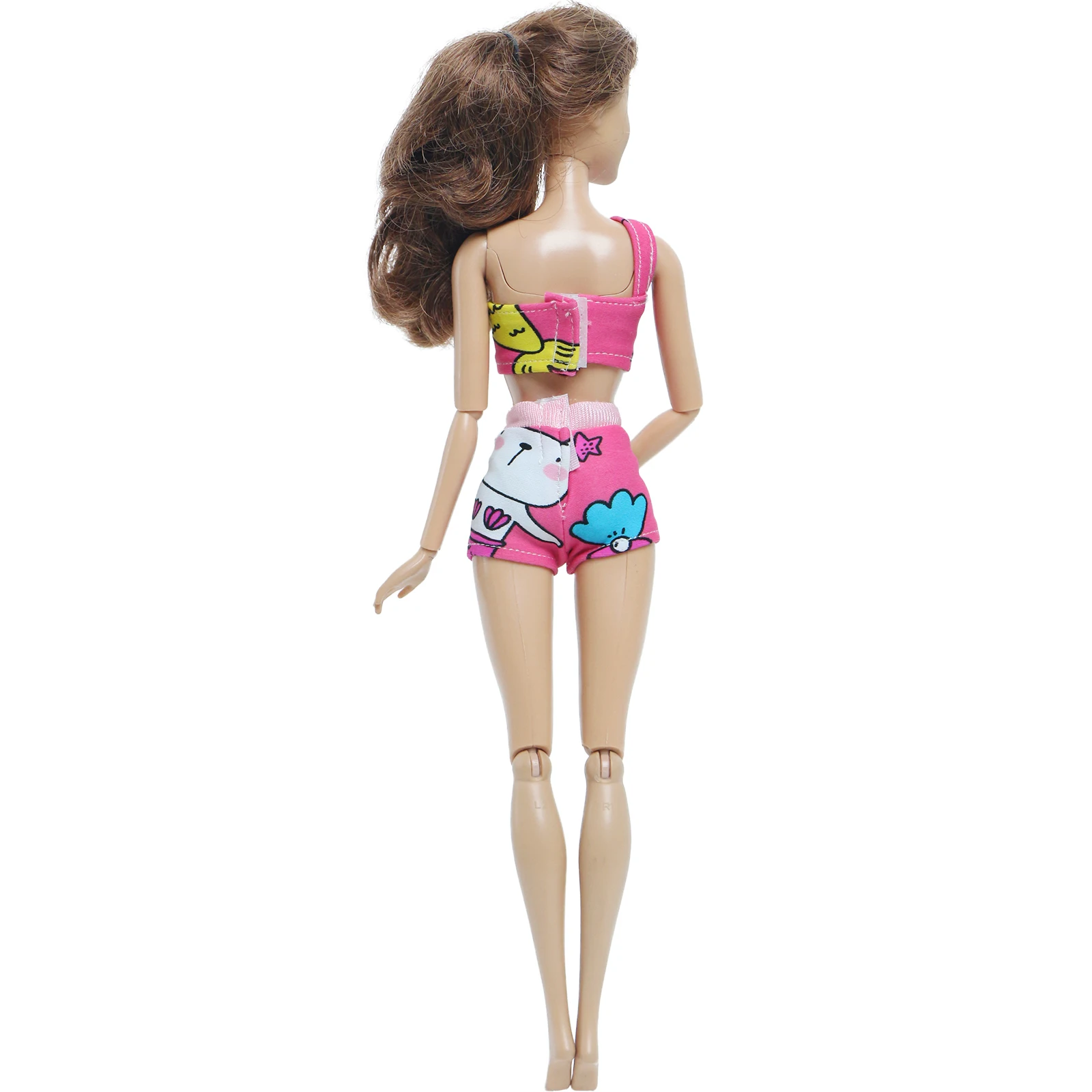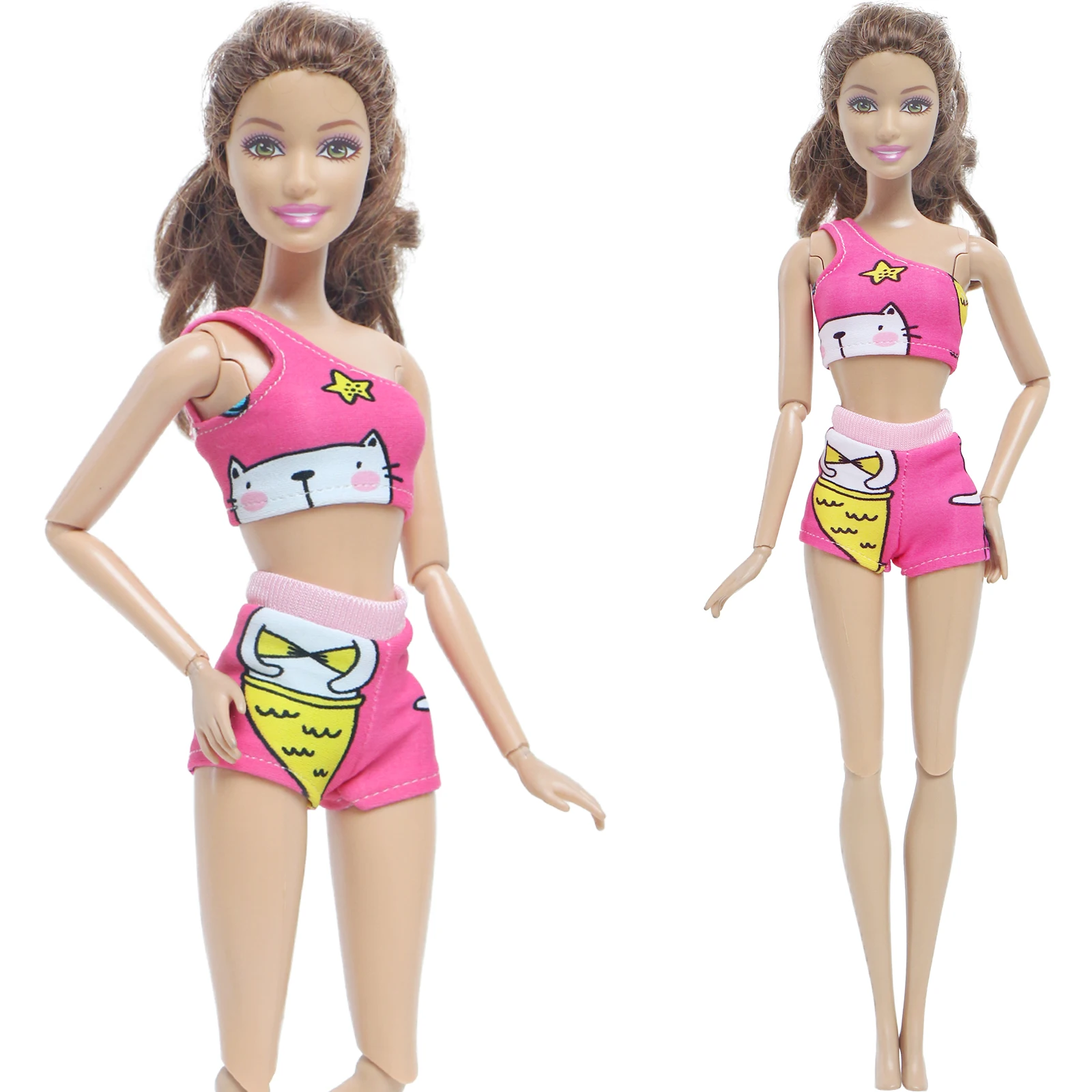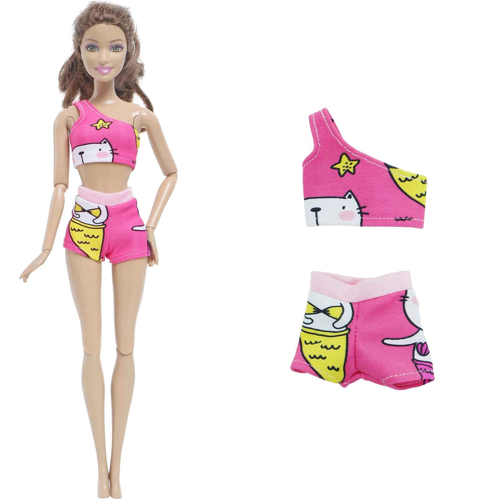 BJDBUS, 1 комплект, ярко-розовое летнее пляжное бикини на одно плечо, купальник, одежда для кукольного домика Барби, игрушки