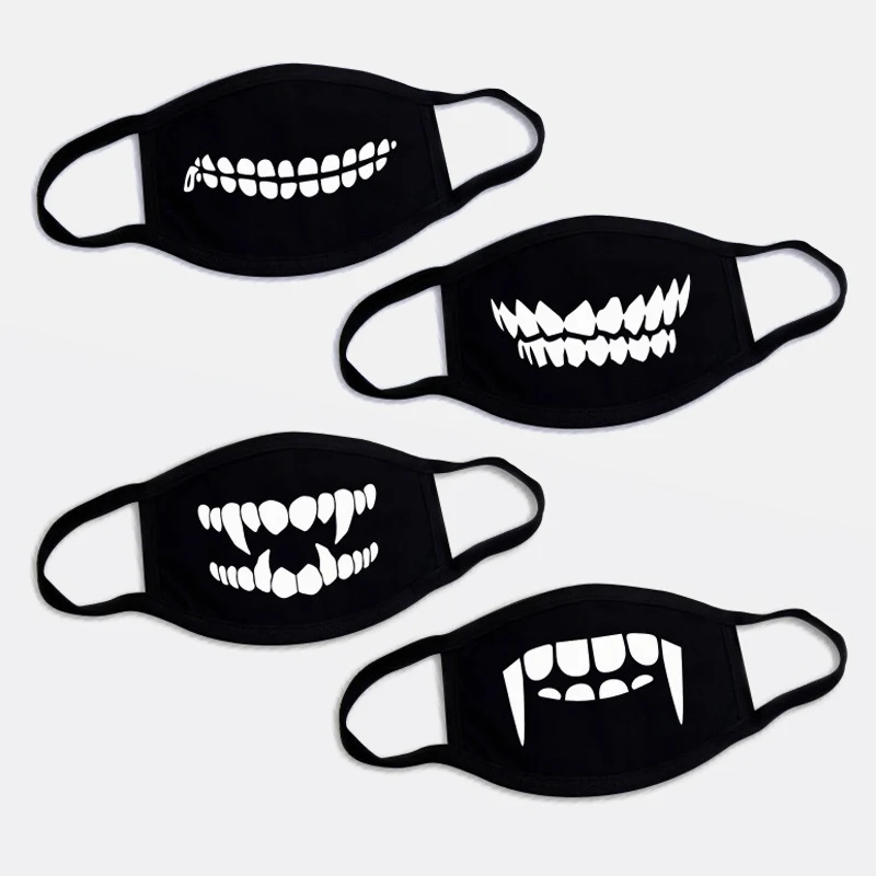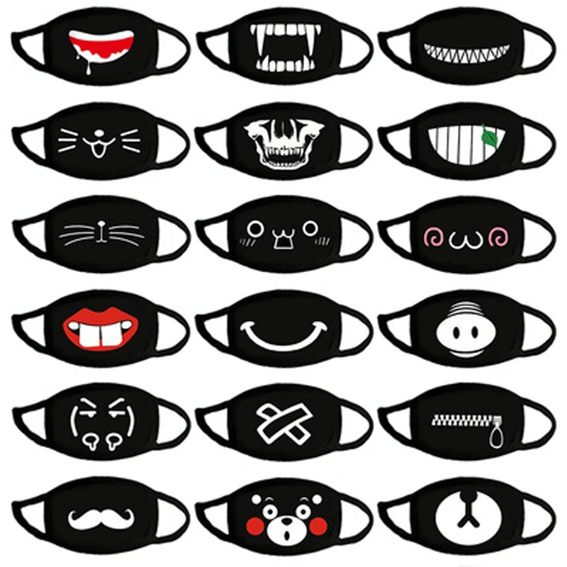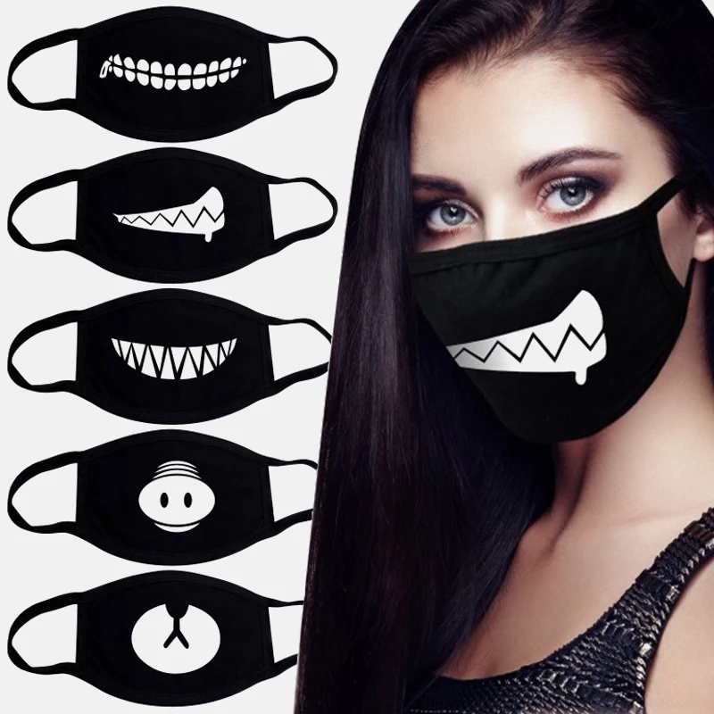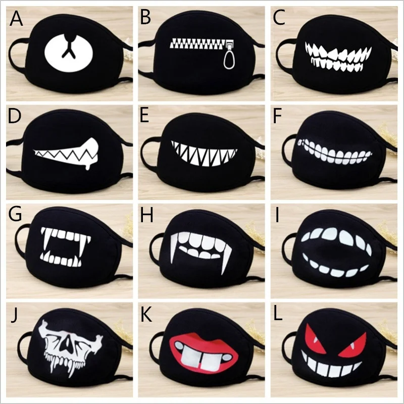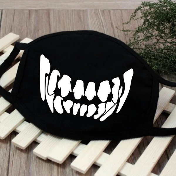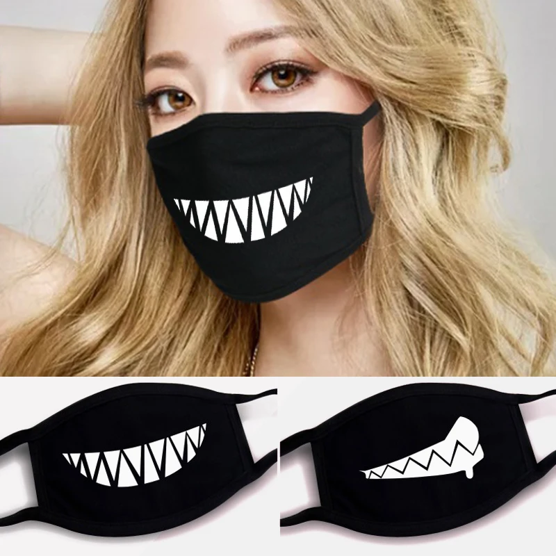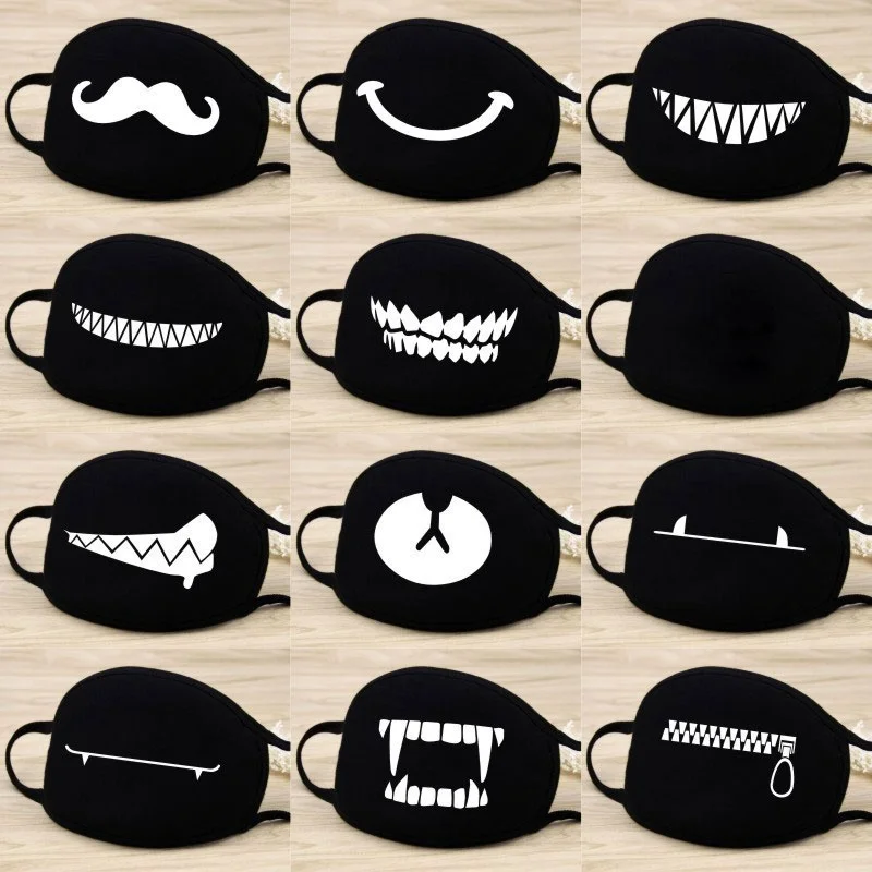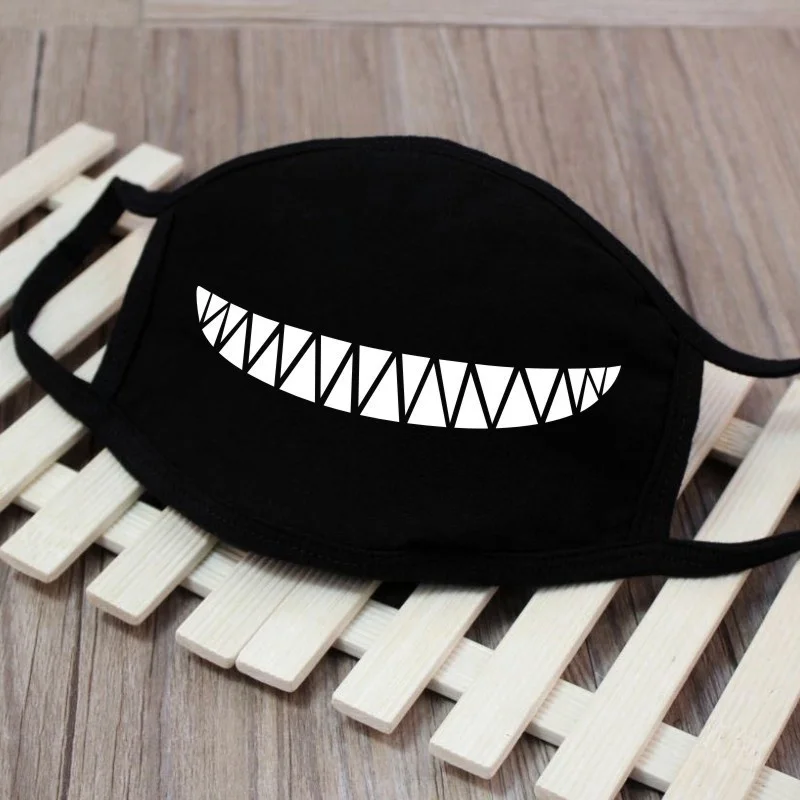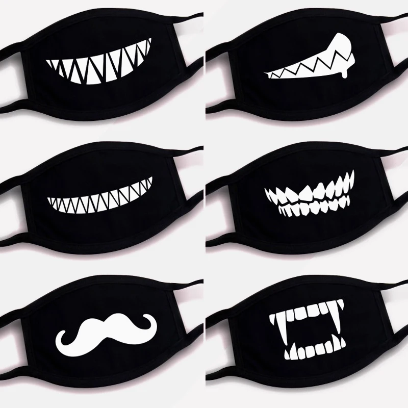 Мультяшная черная маска для лица с забавным рисунком зубов Милая зимняя теплая маска для защиты от пыли моющиеся многоразовые маски украшение