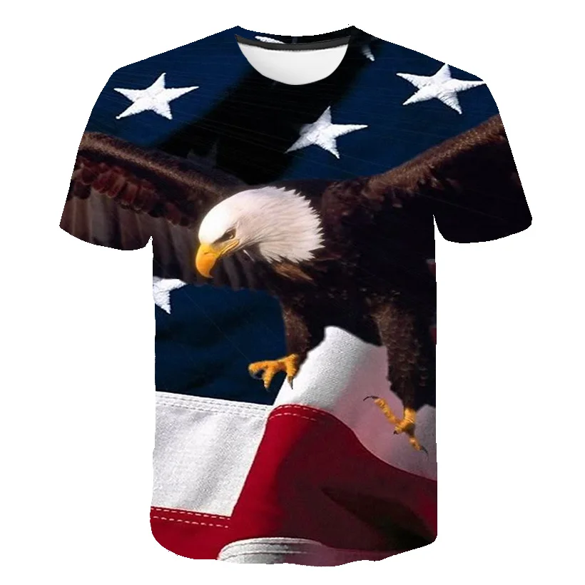Футболка мужская с 3D-принтом американского Орла, смешная в стиле хип-хоп с короткими рукавами, с флагом США, летающим орлом