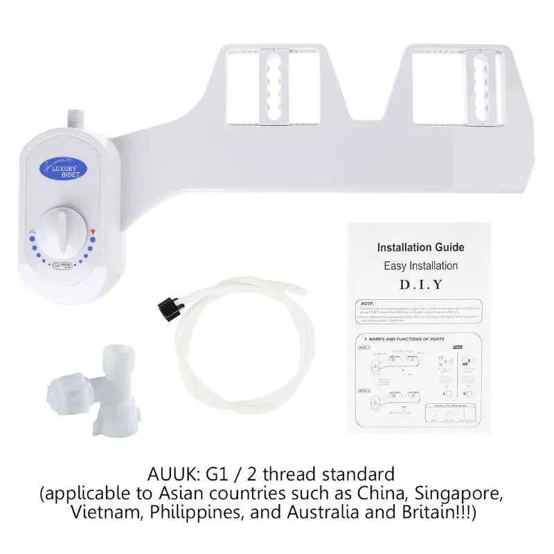 Биде опрыскиватель для биде сиденье для унитаза насадка двойные насадки спрей для пресной воды неэлектрический для дома Белый чистящий инструментБиде спрей для пресной воды неэлектрическое механическое биде сиденье для унитаза насадка двойные насадки Биде опрыскивательОсобенности:Прочное высококачественное крепление для унитаза биде для оптимальной личной гигиеныПростая установка без специальных инструментов, подробные инструкции включеныЛегкий циферблат управления доступом для мгновенной регулировки давления. НеэлектрическийРегулируемое распылительное сопло для вашего лучшего очищения. Изготовлен из прочного высококачественного пластика, который не ржавеетОсвежающий, гигиеничный, дружелюбный к окружающей среде и отличное соотношение цены и качестваПримечания:Стандарт AUUK: G1/2 резьба (подходит для азиатских стран, таких как Китай, Сингапур, Вьетнам, Филиппины, Австралия и Великобритания!)США: 15/16 нитей, североамериканский стандарт (применяется к США, Канаде, Мексике и т. д.)Стандарт ЕС: 3/8 резьба (подходит для Европы, таких как Франция, Германия, Италия, Испания и т. Д.)Посылка включает в себя:1 * Биде опрыскиватель для унитаза1 * трубка3 * шайбы1 * Описание установки