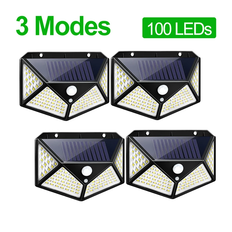 100 светодиодный светильник на солнечной батарее, уличный, 3 режима, датчик движения, настенный светильник с питанием от солнца, водонепроницаемый, для дома, патио, улицы, дворовый садовый декор