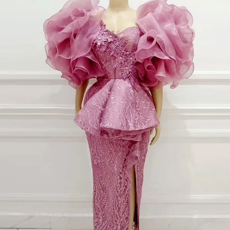 Пышные кружевные Выпускные платья с оборками, баской, аппликациями, бусинами, разрезом сбоку, вечернее платье русалки, женское официальное платье