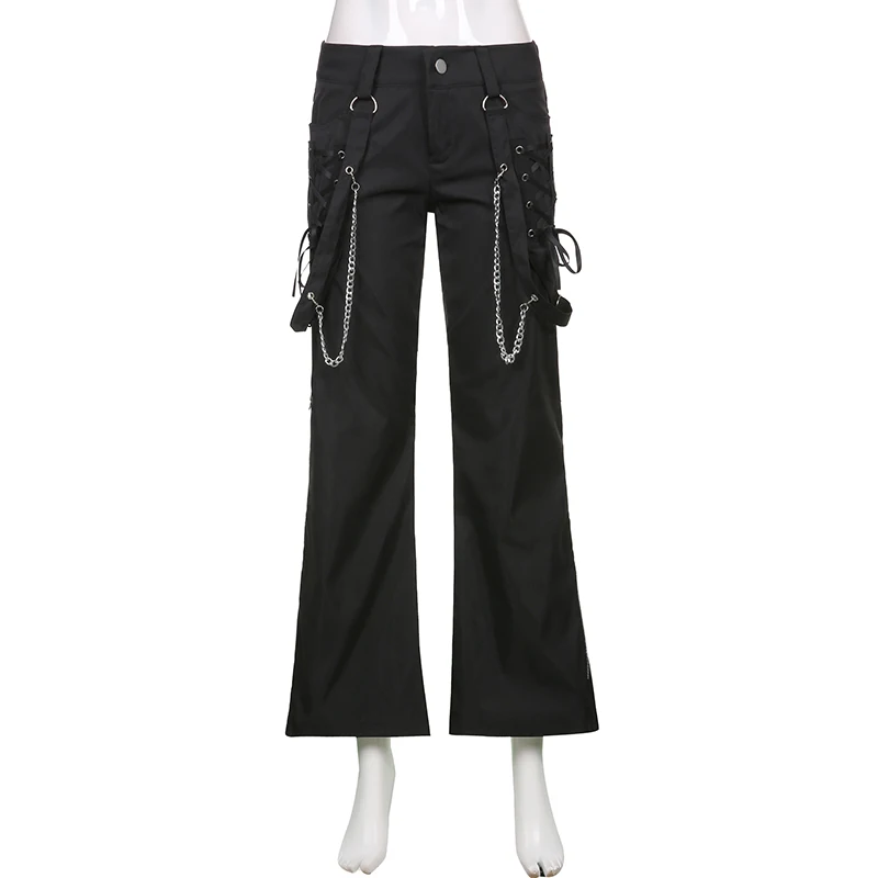 Брюки-карго женские с заниженной талией, уличная одежда черного цвета, темная академическая техника, штаны с широкими штанинами в стиле панк, E-Girl
