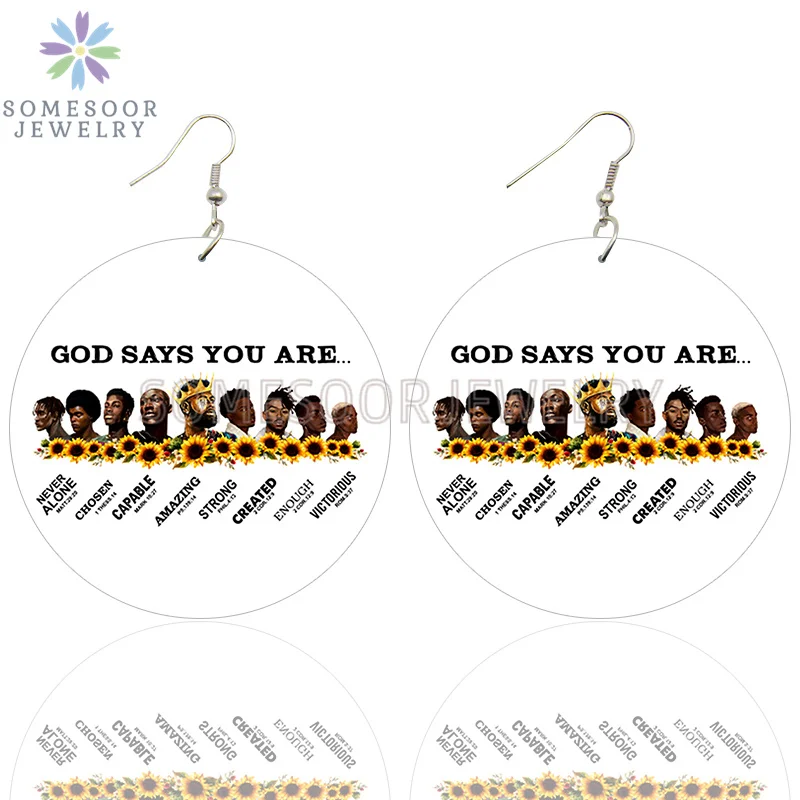 SOMESOOR God говорит, что вы сильные, деревянные серьги-капли, черные, 5 звезд, рекомендуются, мощные петли, Висячие ювелирные изделия для женщин, подарки