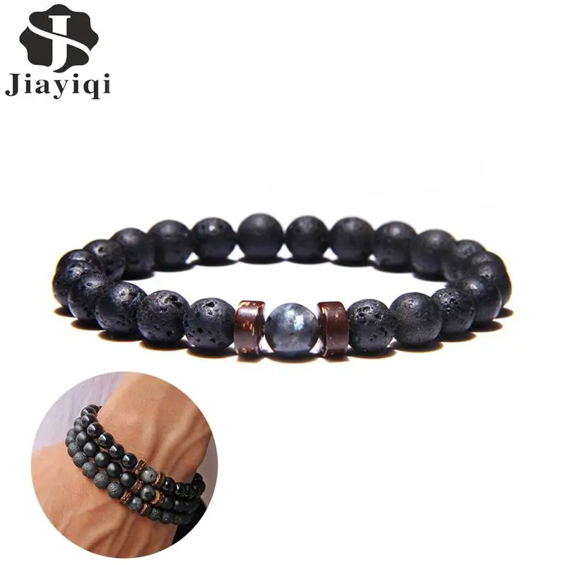 Браслет с бусинами для мужчин, из натурального вулканического камня, тибетская Будда, чакра, лавовый камень, диффузор, браслеты для мужчин, модная новинка, ювелирные изделия