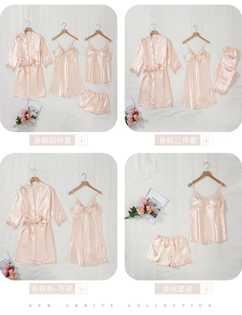 Кружевной пижамный комплект PJ's Sleep, Женский комплект из 5 предметов, атласная пижама, летняя Пижама с брюками, ночная рубашка с V-образным вырезом