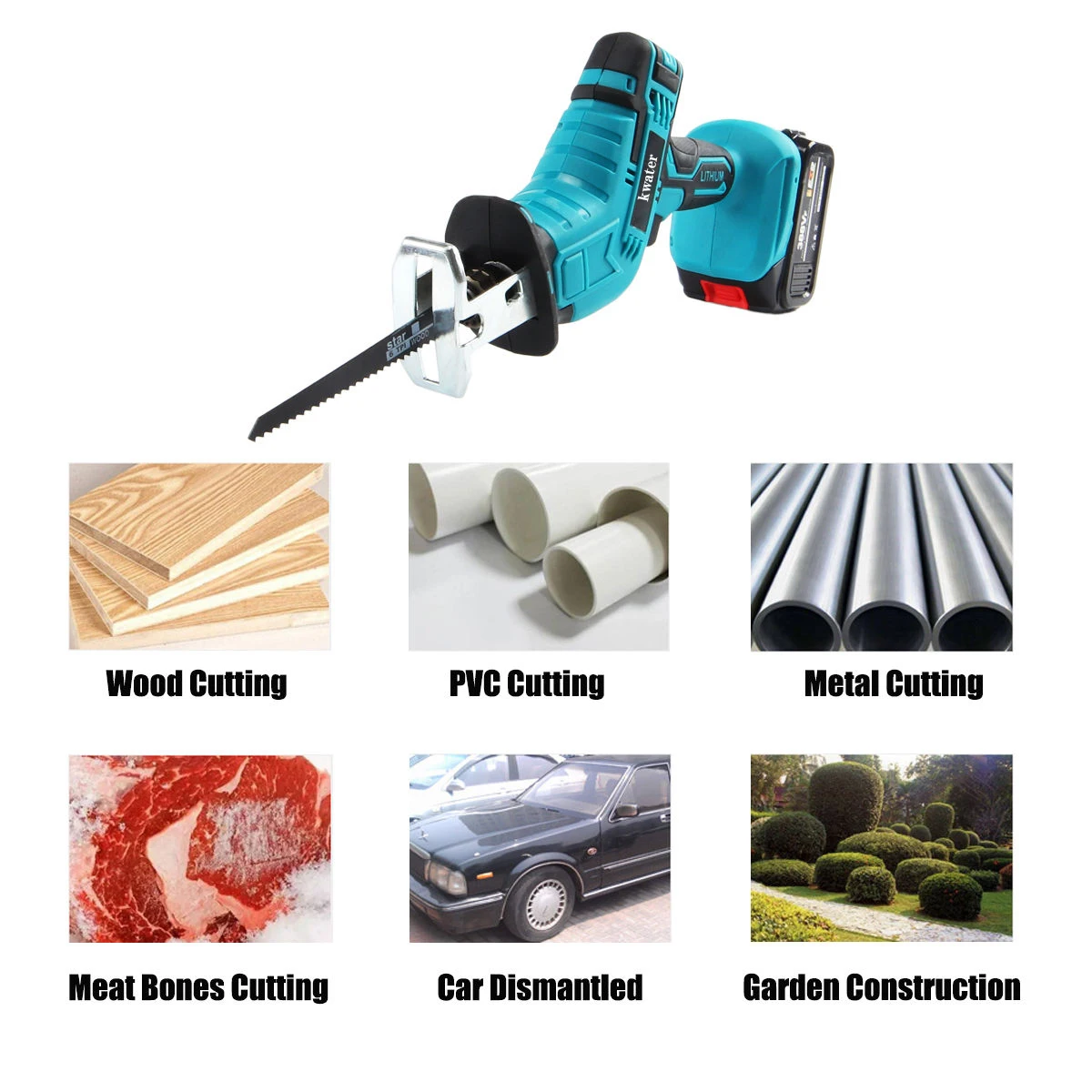 Характеристики:Цвет: синийТип аккумулятора: 21 в, 7500 мАчСкорость без нагрузки: 0-3000 об./мин.Длина хода: 10 ммГлубина реза в металле: 2 ммГлубина резки по дереву: 100 ммГлубина резки в пластике: 100 ммОсобенности:● Высокая мощность.● Электрический тормоз.● Переменная скорость.● Замена лезвия без инструментов.● Эргономичная ручка.● Триггерный переключатель с рычагом блокировки.● Новый механизм для повышения эффективности.Посылка(Необязательно)Вариант 1:1 х сабельная пила4 пильных диска1 х батарея1 зарядное устройство