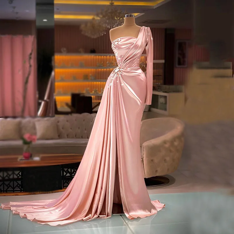 Женское атласное вечернее платье с юбкой-годе, на одно плечо