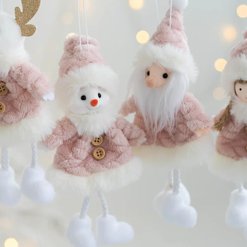 Розовая Рождественская плюшевая подвеска в виде ангела, девочки, снеговика, Санта-Клауса, снеговика, лось, кукла, украшения для рождественской елки, подарки на Рождество
