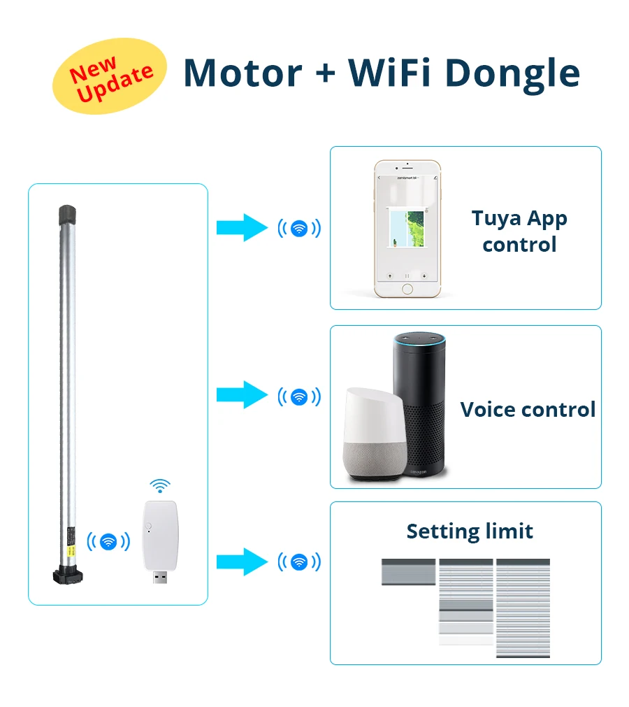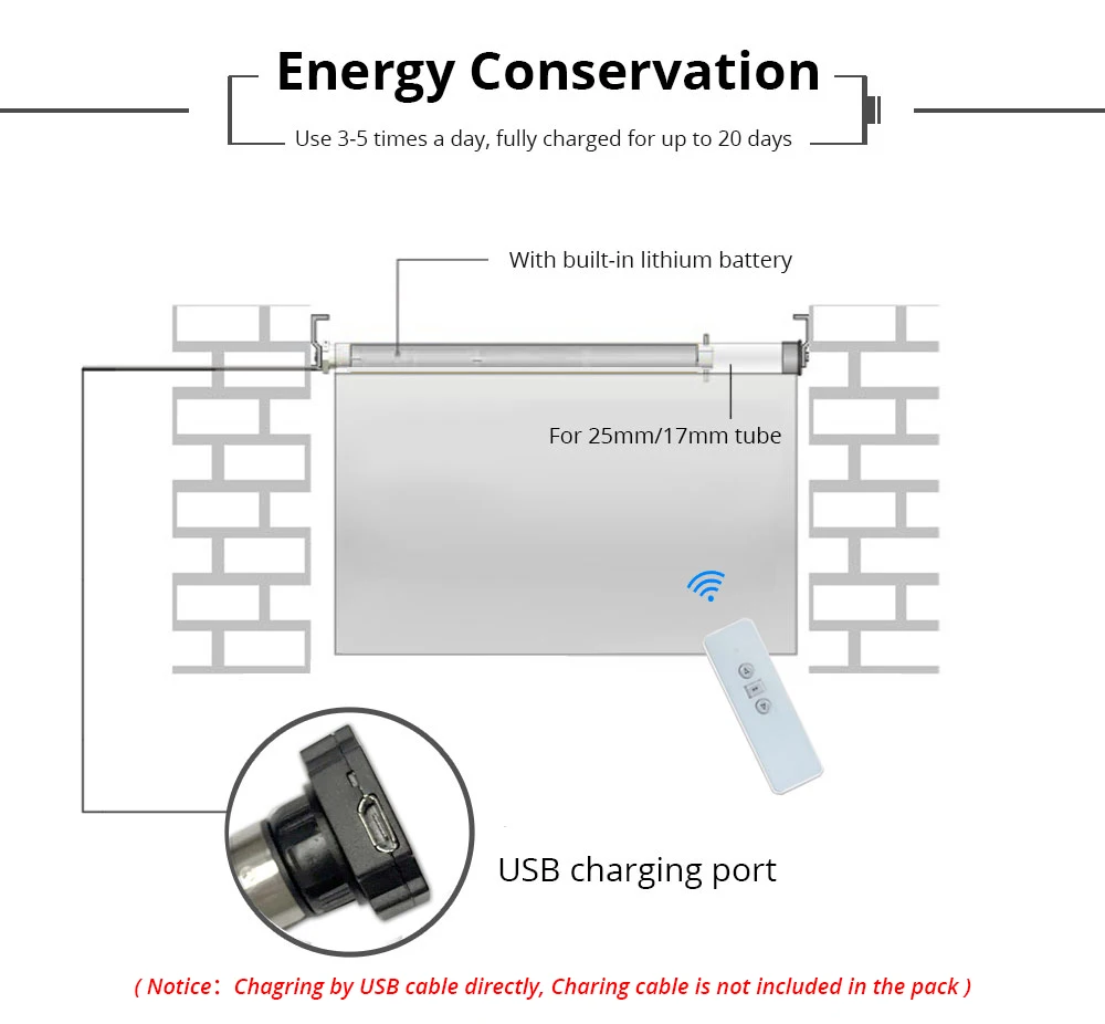 Мотор для рулонных штор Zigbee, Wi-Fi, со встроенным USB-разъемом