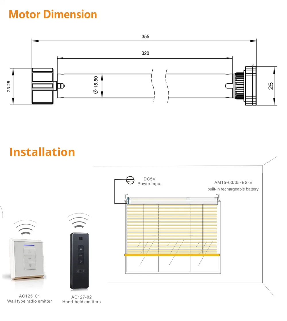 -Трубчатый двигатель в основном используется для внутренних полых жалюзи, маленьких алюминиевых, деревянных жалюзи и т. д. с электронным ограничением
