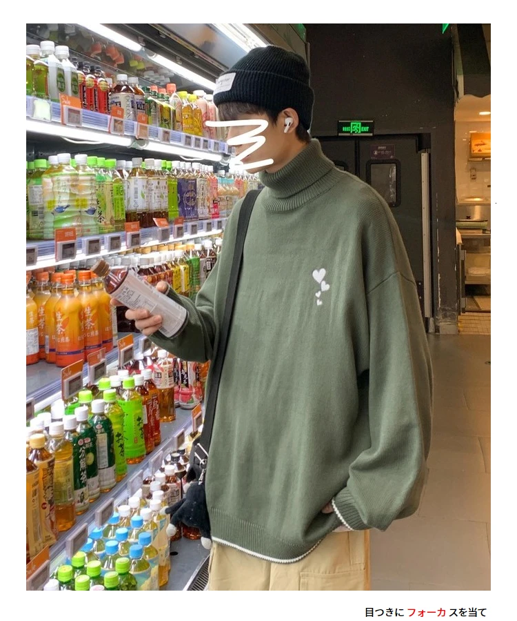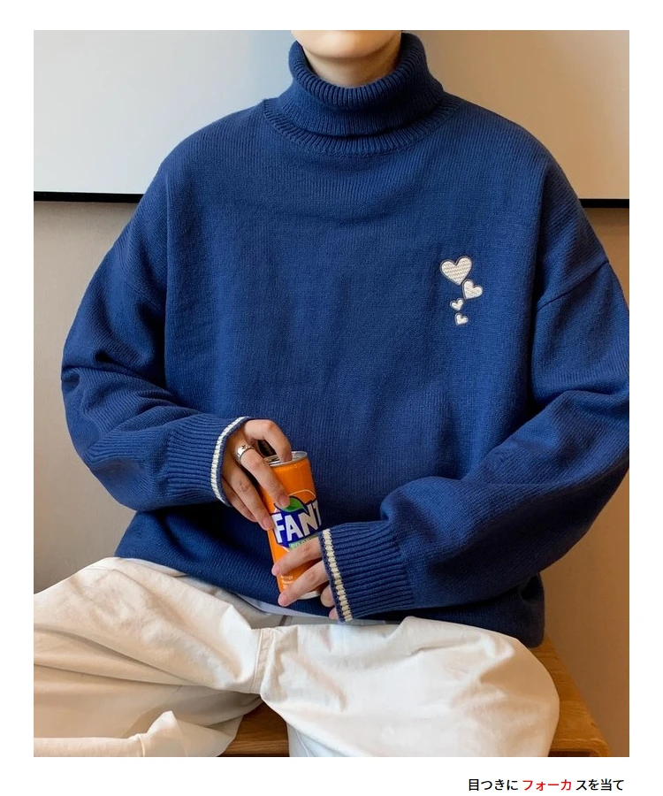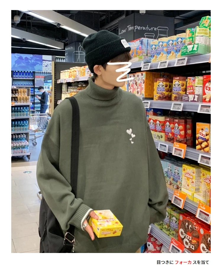 Водолазка Hybskr свободного покроя, мужской зимний свитер, модные пуловеры с рисунком сердечек, теплая трикотажная одежда в стиле Харадзюку, новинка 2021, мужская одежда
