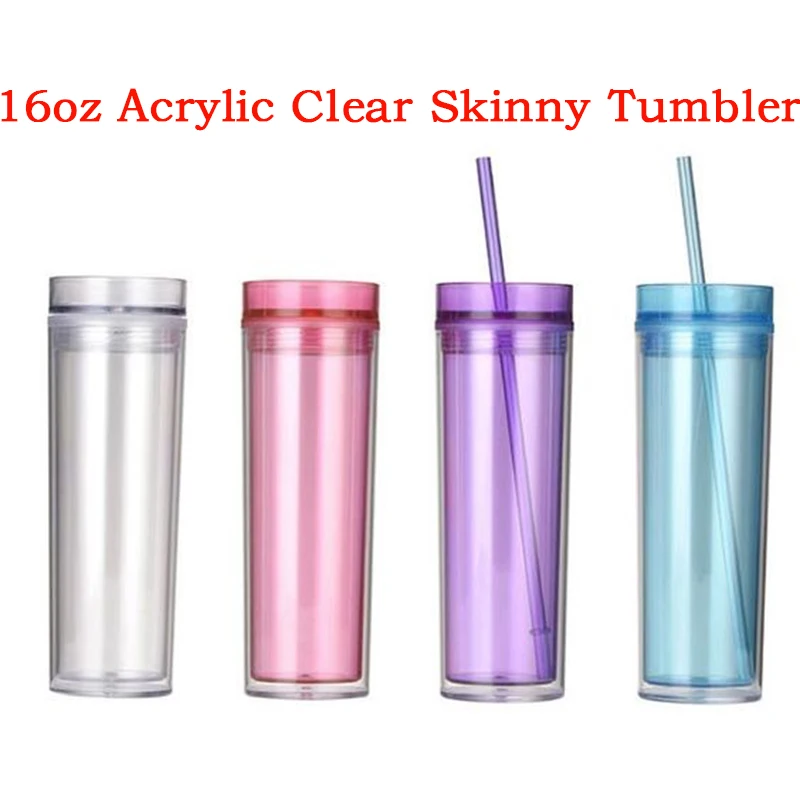 16 унций пластиковые тонкие стаканы с двойной стенкой с крышкой и соломенной кружкой изолированные многоразовые стаканы прозрачные акриловые бутылки для воды