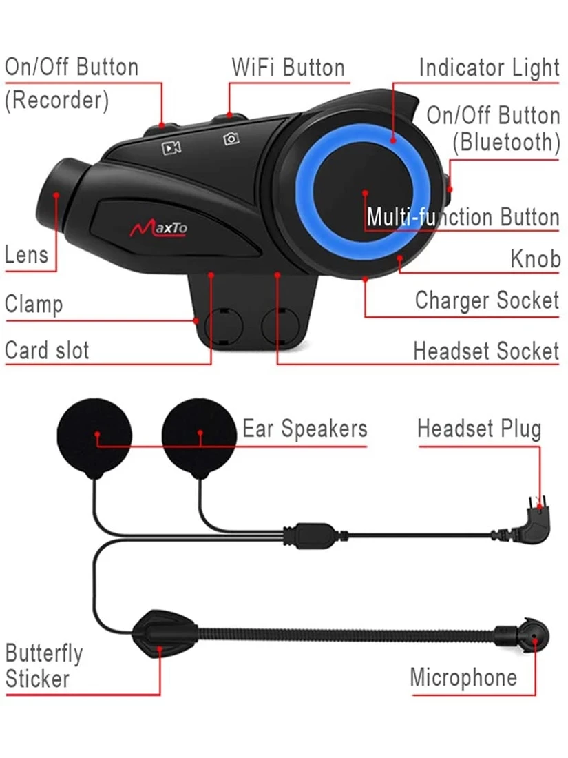 Мотоциклетный шлем Maxto M3, Интерком, 6 водителей, Bluetooth, Wi-Fi, моторекордер, Переговорная гарнитура с объективом Sony, видеорегистратор HD 1080P