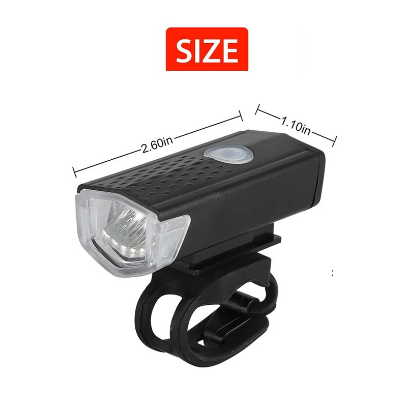 Передний светильник (USB Перезаряжаемый):Материал: PC + ABSРазмер: Approx.65mmx29mmx23mmСветильник источник: XPE 3 Вт светодиодныйСветильник, цвет: черныйВыход (максимум): 300 лмРасстояние освещения: 30-50 метров в ночное время3 режима работы: высокий-средний-стробоскопИсточник питания: литий-полимерный аккумулятор 800 мАчВремя зарядки: около 3 часовВремя работы:Высота: 3 часаСредняя: 5 часовМигание: 12 часовПодходит для руля: 20-40 мм