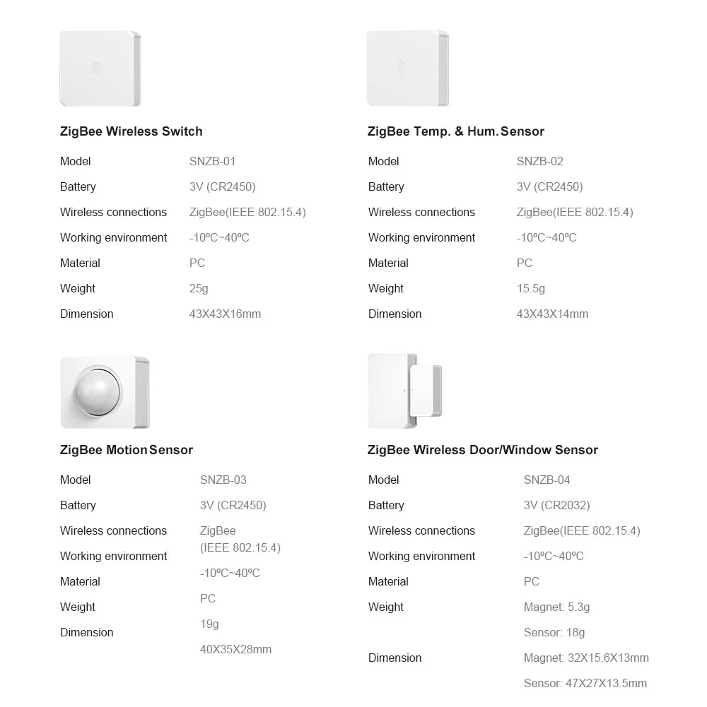 Поддержка подустройств: BASICZBR3 Smart Switch, S31 Lite zb Smart Plug, SNZB-01 беспроводной переключатель (скоро), SNZB-02 Temp. И ГУМ. Датчик (скоро), SNZB-03 датчик движения (скоро), SNZB-04 беспроводной датчик двери/окна (скоро)