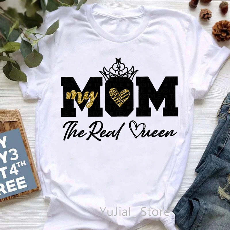 Футболка женская с принтом настоящая королева и надписью Golden My Mom