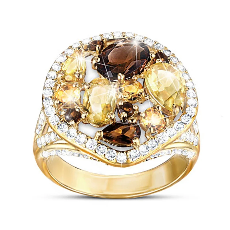 Кольцо с золотым покрытием, белый циркон, коричневый кристалл, деше...