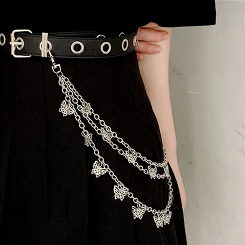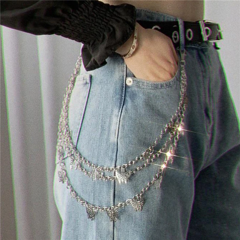 Металлическая цепь для брюк в стиле панк, многослойная уличная искусственная цепь для женских брюк, украшения для джинсов в стиле панк