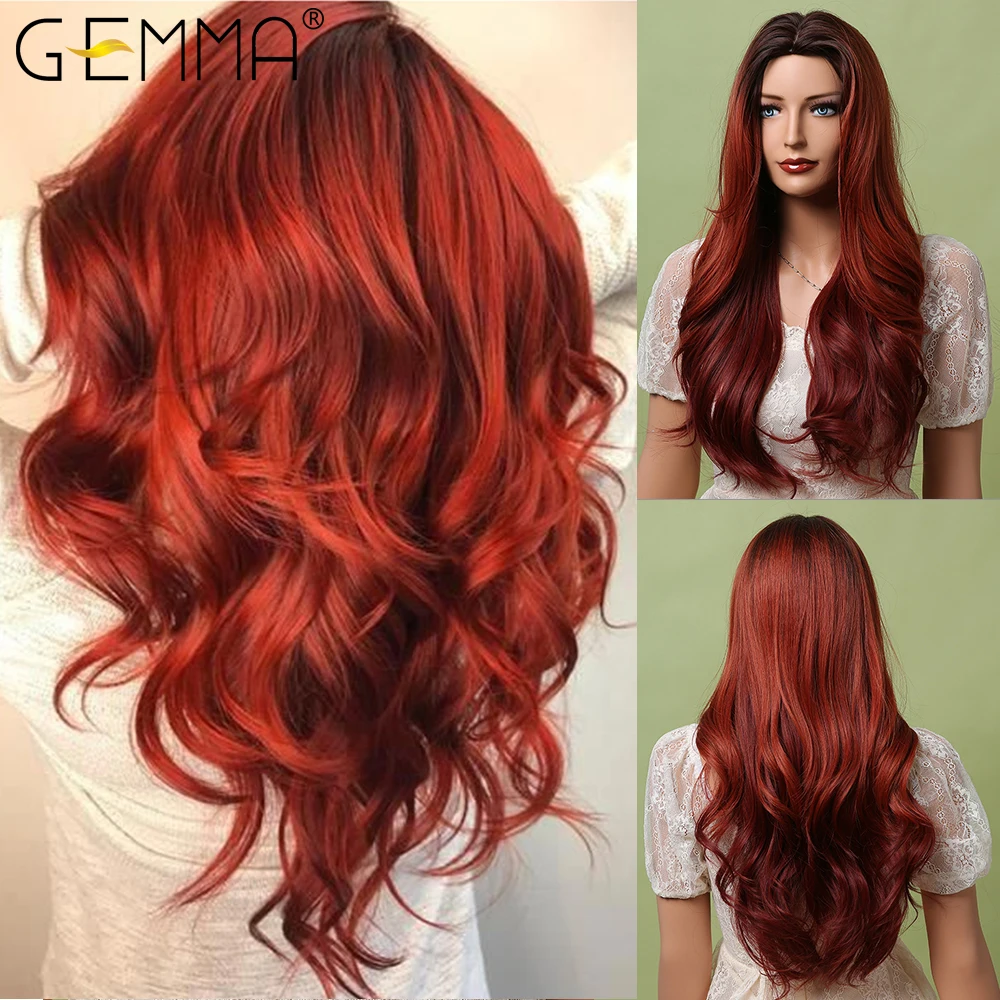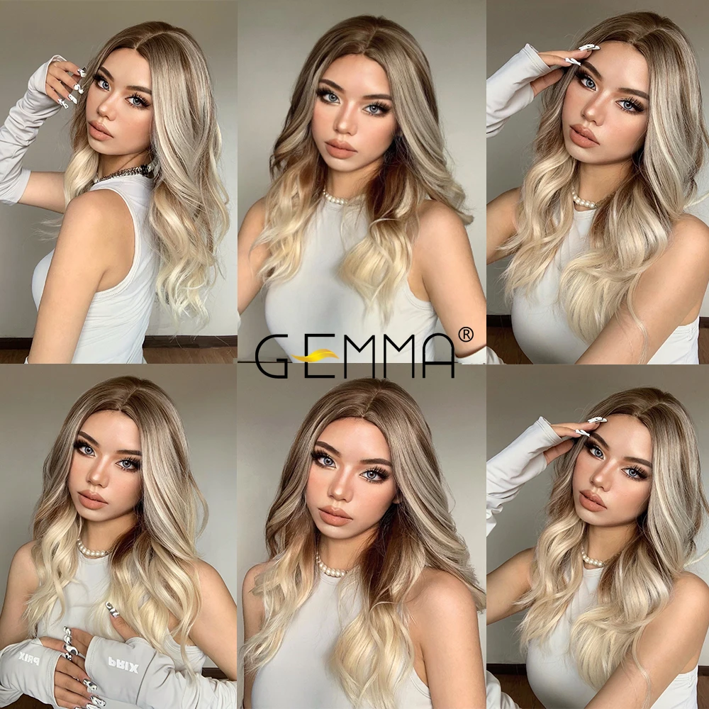Длинные волнистые парики GEMMA, Omber, коричневый, золотой цвет, светлые, синтетические парики для женщин, натуральные, средняя часть, парик для косплея, термостойкие