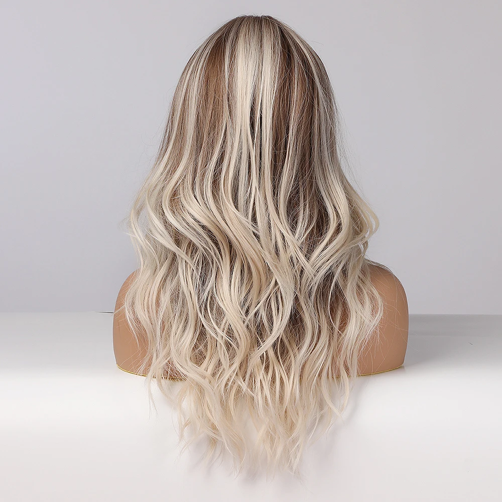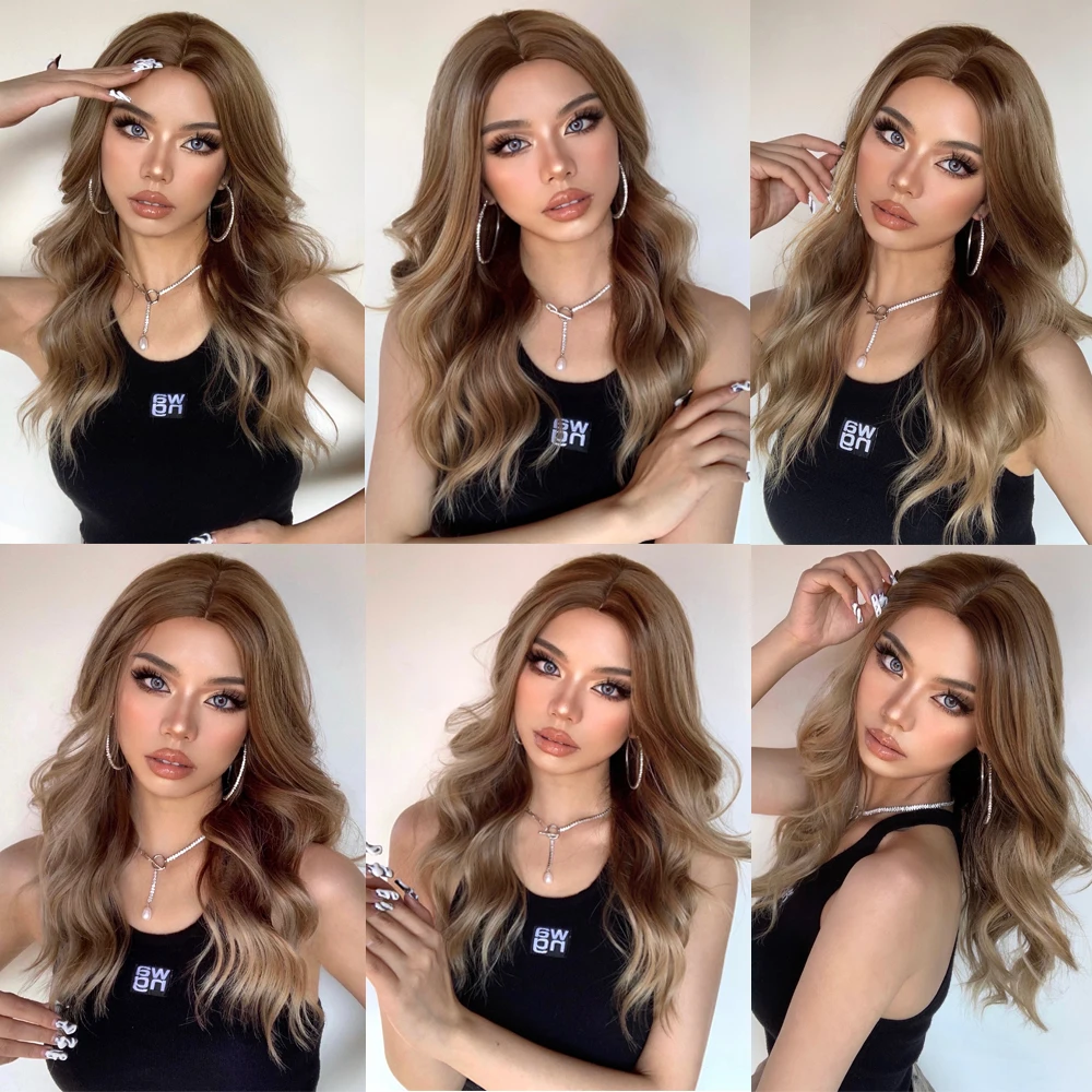 Длинный волнистый парик GEMMA, Омбре, коричневый, золотой, светлый синтетический парик для женщин, натуральный парик для косплея средней части, термостойкий