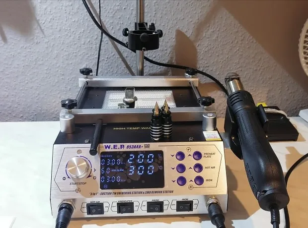 Паяльная станция с программным управлением WEP 1200 Вт, автоматическая паяльная станция с предварительным нагревом и термофеном 3 в 1 BGA, паяльная станция 853AAA +