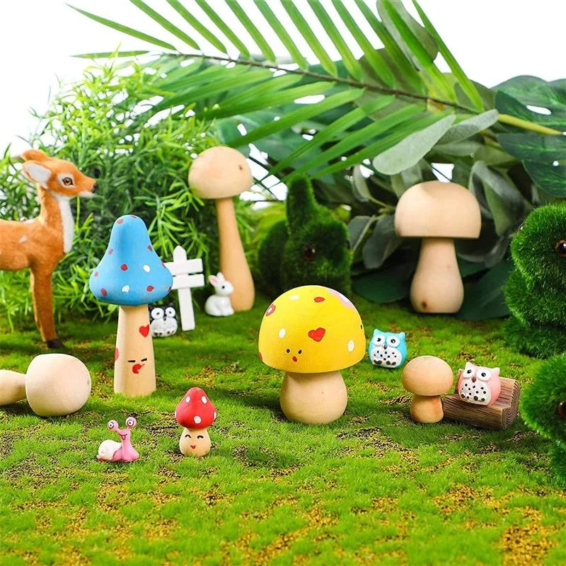Необработанные, твердые деревянные грибы готовы для ваших детей, чтобы покрасить, украсить или закончить его, как вам нравится.