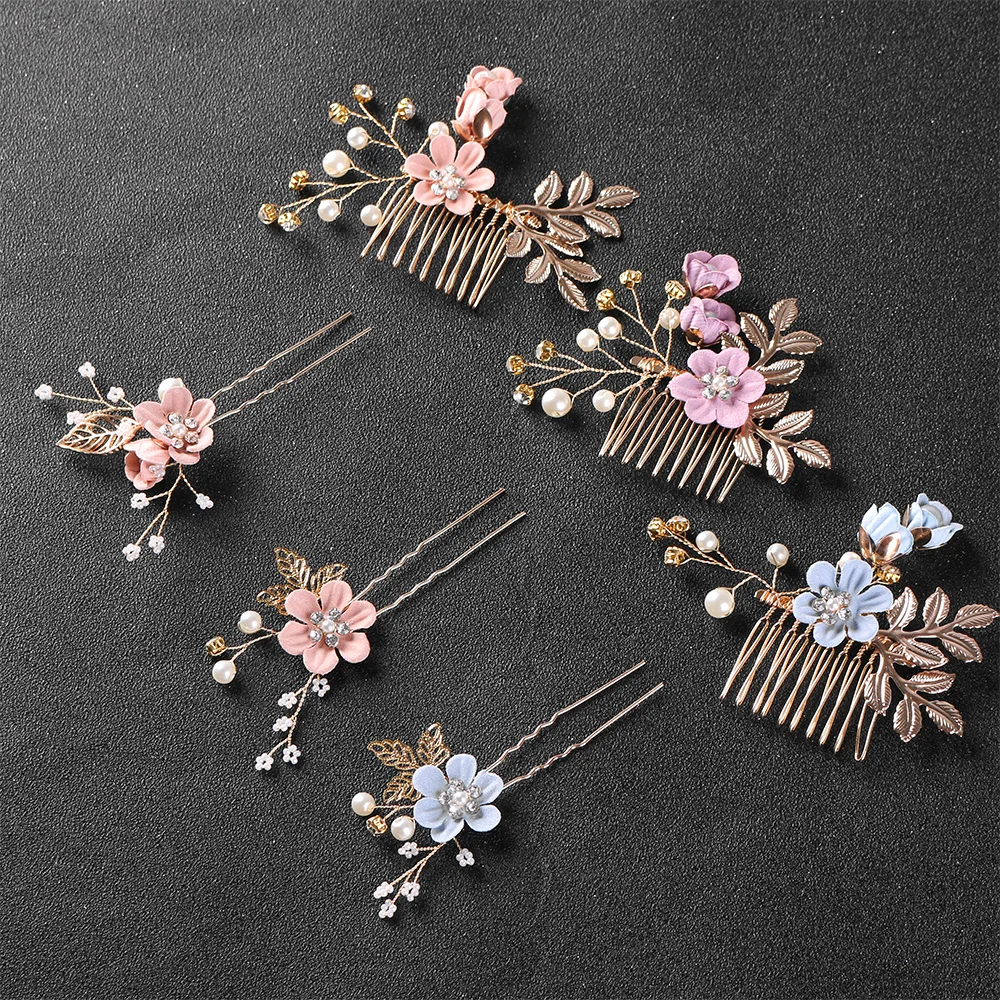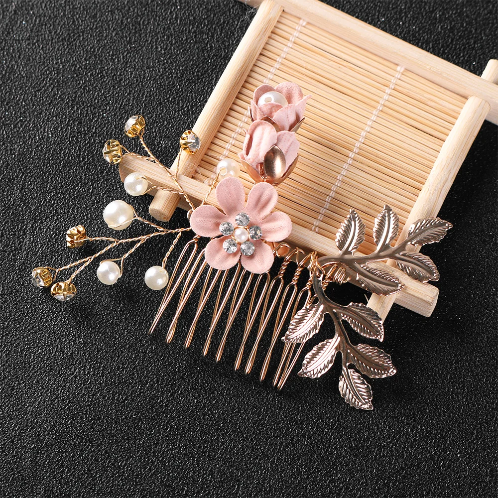 1 шт., гребень для волос с золотыми листьями, в форме цветка