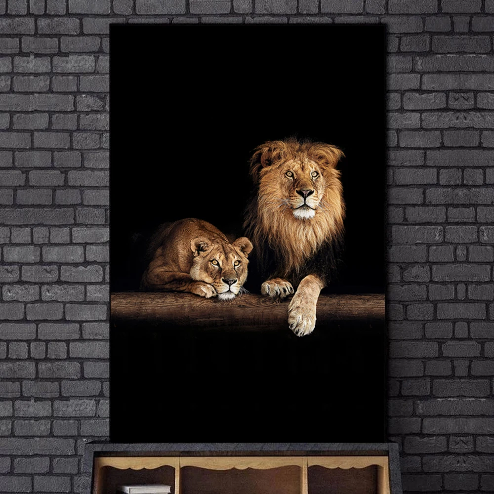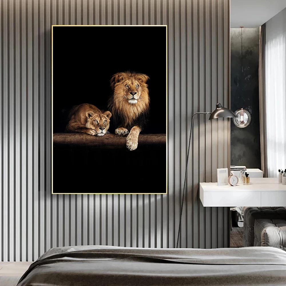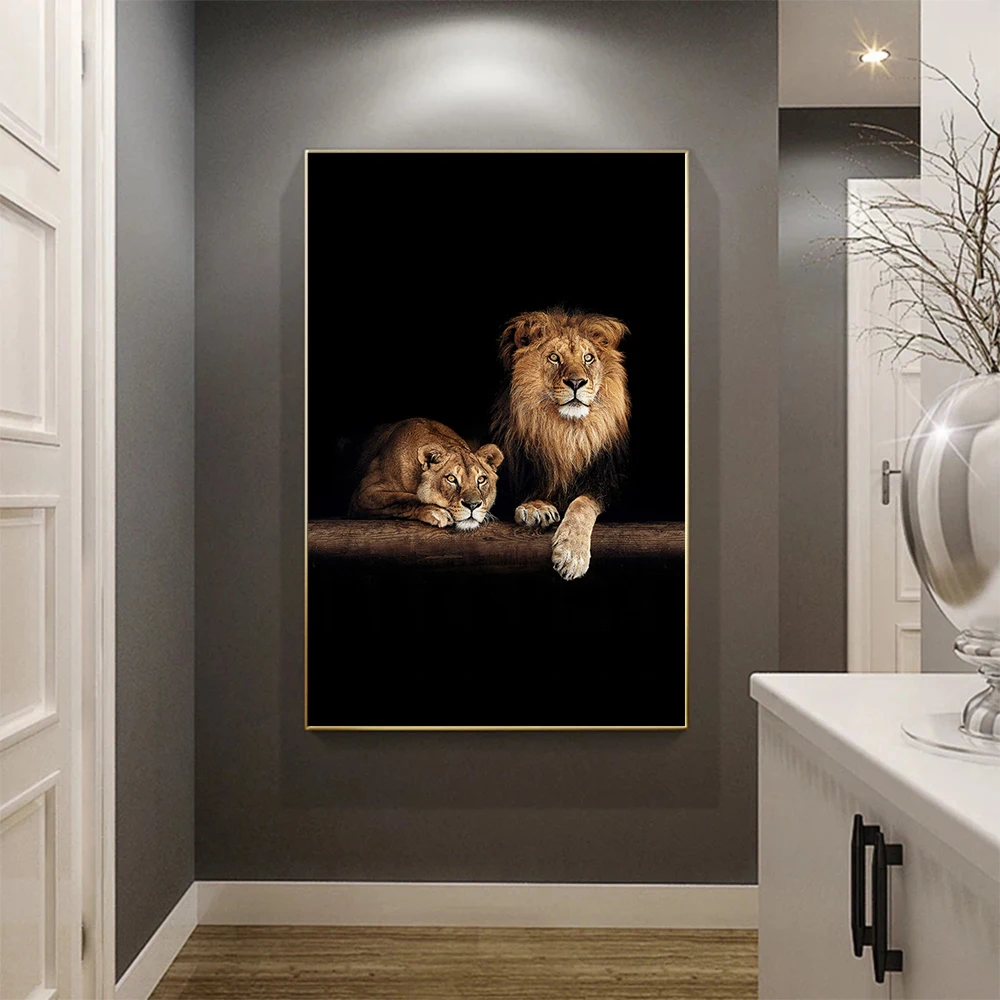 Картина на холсте с Африканским львом и львом в темноте, Настенная картина с дикими животными, современный постер для украшения гостиной