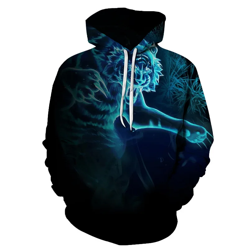 Толстовка с капюшоном и 3D-принтом Тигра для мужчин и женщин, забавная уличная одежда, модная повседневная трендовая Черная куртка, толстовки большого размера