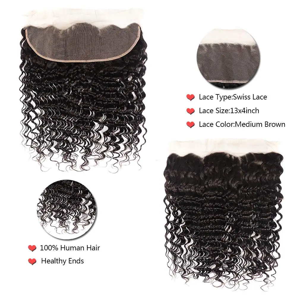 30-дюймопряди глубоких волн с фронтальной 13X6 HD прозрачной кружев...