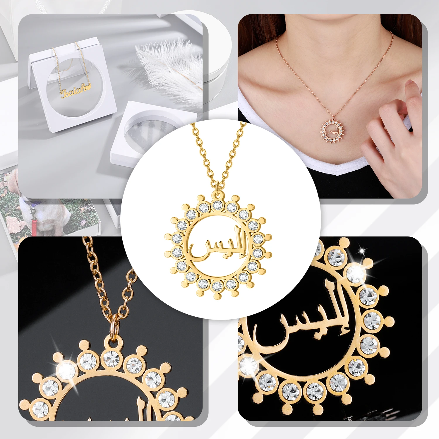 Ожерелье с арабским именем и бриллиантами на заказ, ожерелья с кристаллами, персонализированный арабский кулон со стразами для женщин, ювелирные изделия, рождественский подарок