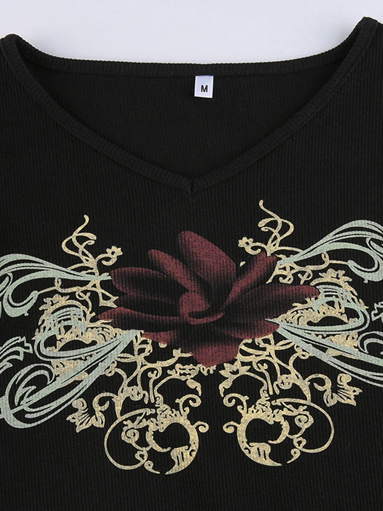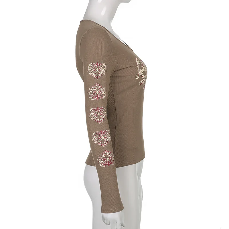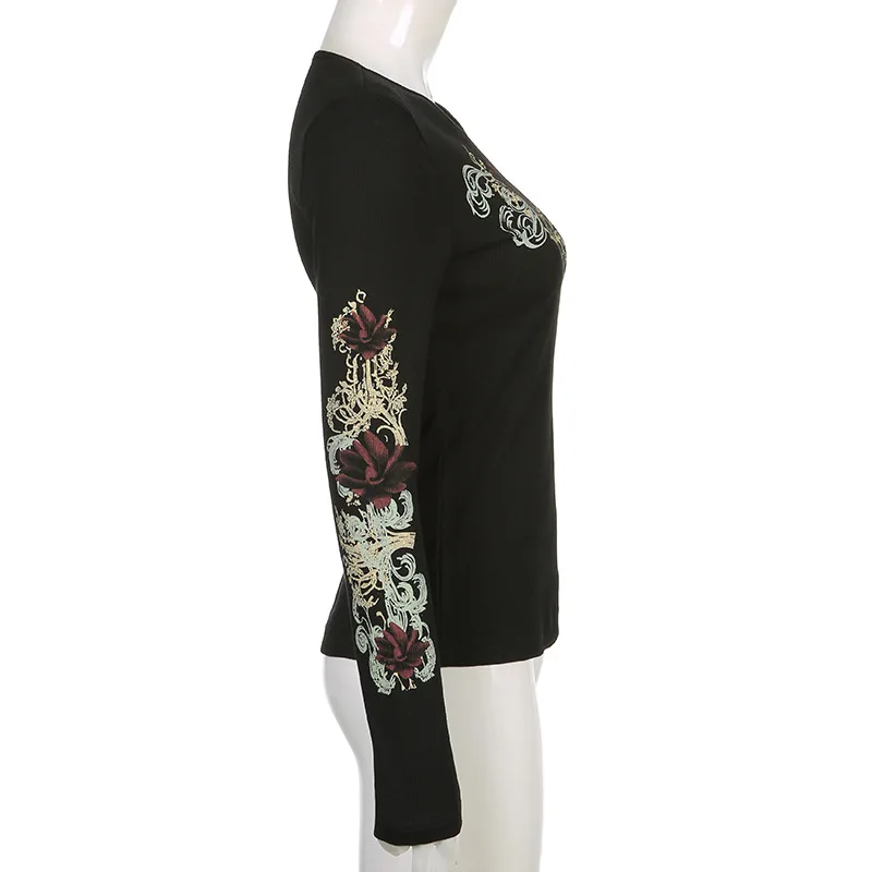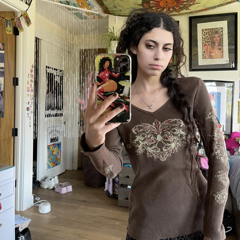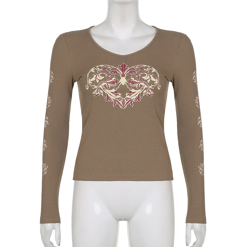 Женские футболки Gitana 2022 с графическим принтом в стиле ретро, Осенние футболки с длинным рукавом, с изображением Феи гранж, облегающий Повседневный укороченный топ темной Академии