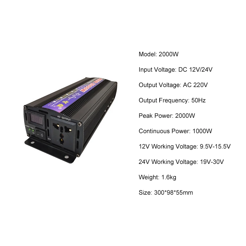 2000 Вт Инвертор немодулированного синусоидального сигнала трансформатор напряжения инвертор постоянного тока 12 В 24 В переменного тока 220 в преобразователь автомобильный микро Инвертор солнечной энергии