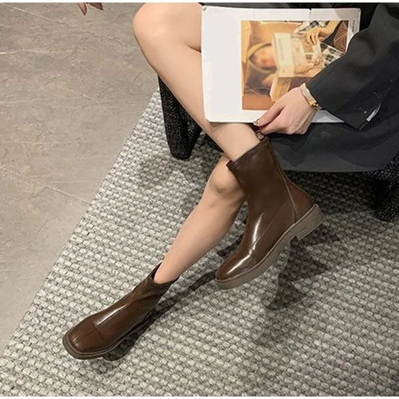 Женские ботильоны на молнии, осенние ботинки из мягкой кожи на платформе и низком каблуке, 2021