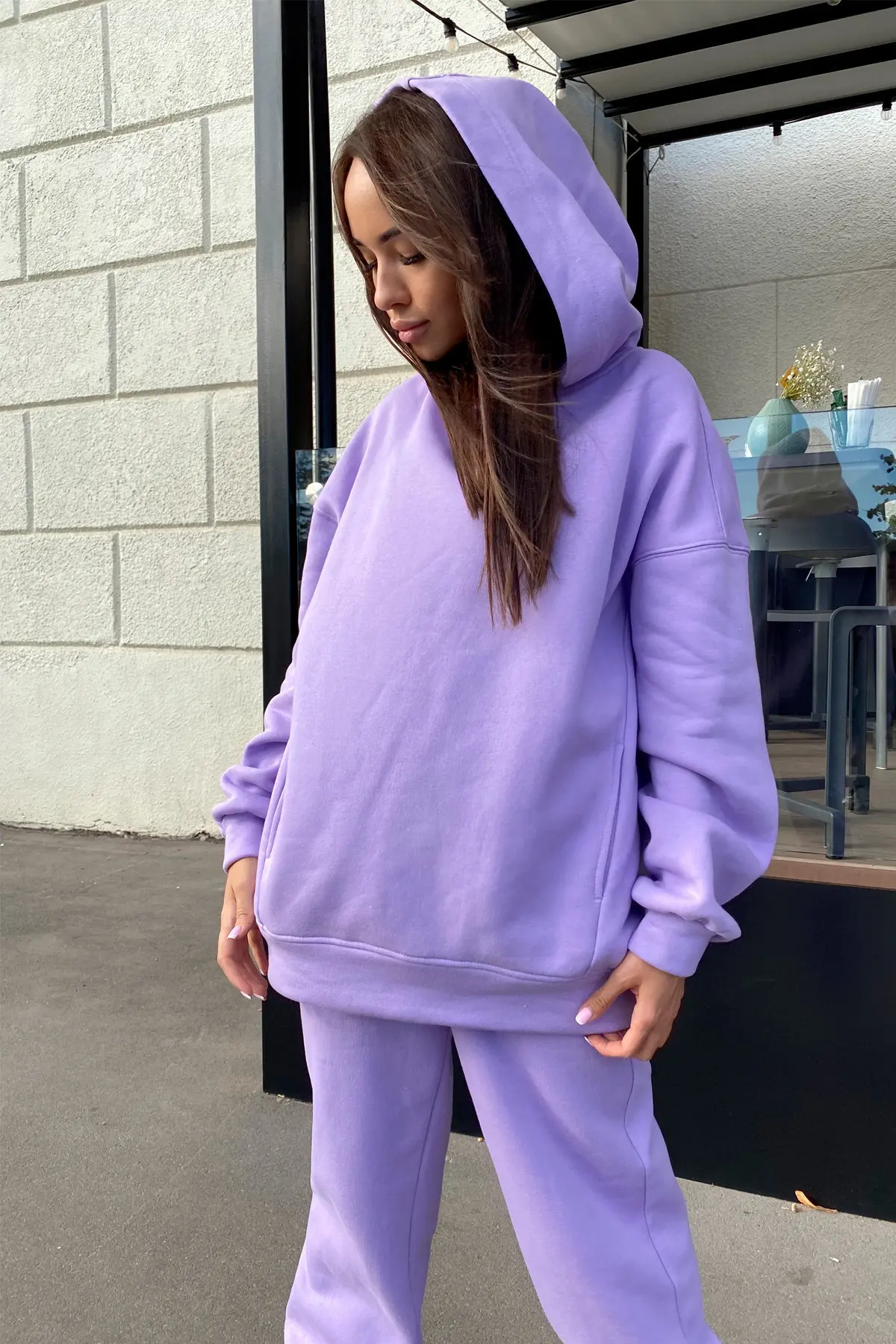 Комплект из двух предметов женский с капюшоном, толстовка с длинным рукавом, пуловер, свитшот и длинные брюки, WDC8656