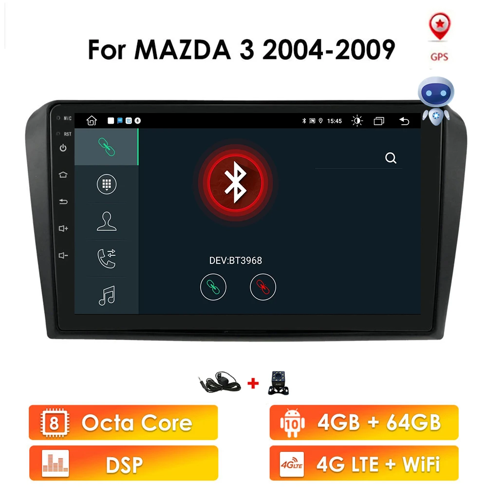 Автомобильный мультимедийный плеер на Android 10,0 для Mazda 3 BK Mazda3 2004-2009, Авторадио с GPS-навигацией, AHD-камерой, Wi-Fi, 9-дюймовым экраном, стерео RDS