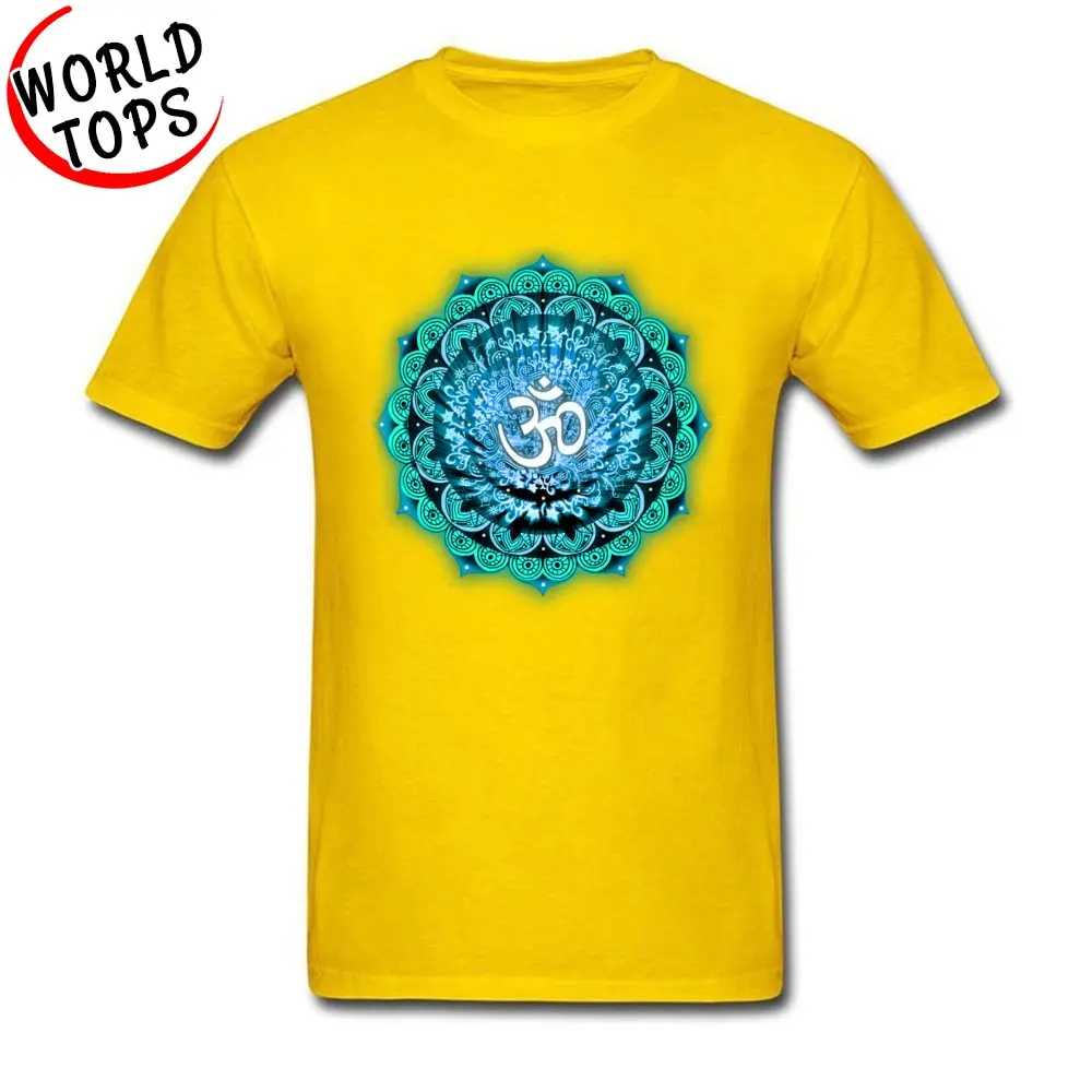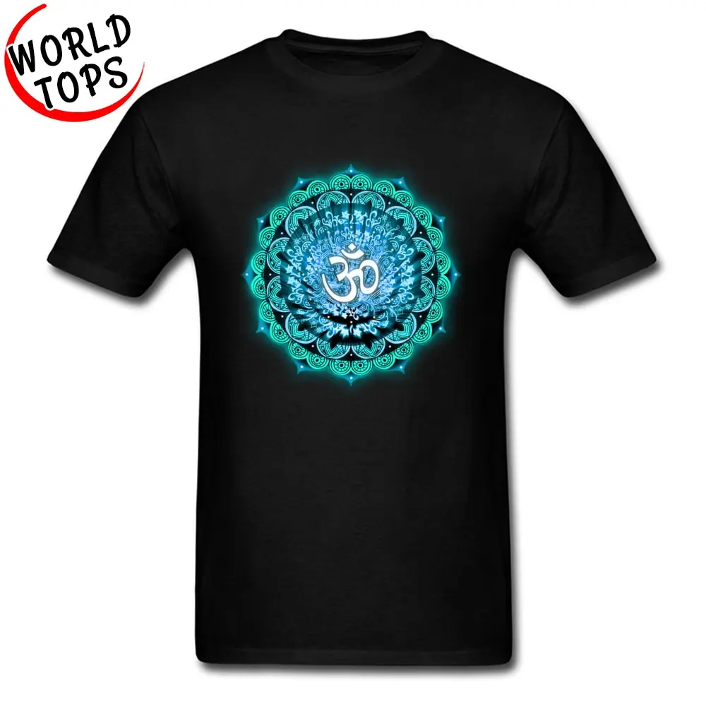 Индийская синяя футболка с рисунком Ом мандалы, 100% хлопок, мужские топы, футболки для женщин и мужчин, обычные Топы И Футболки, оптовая продажа, под заказ