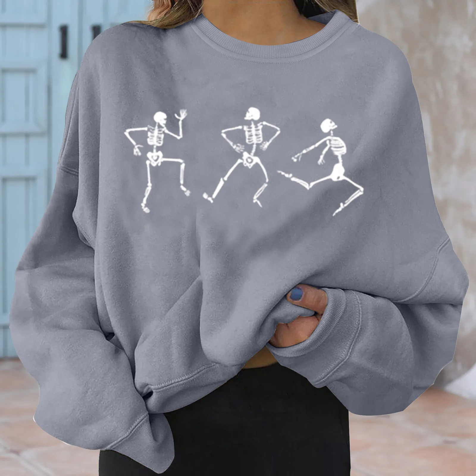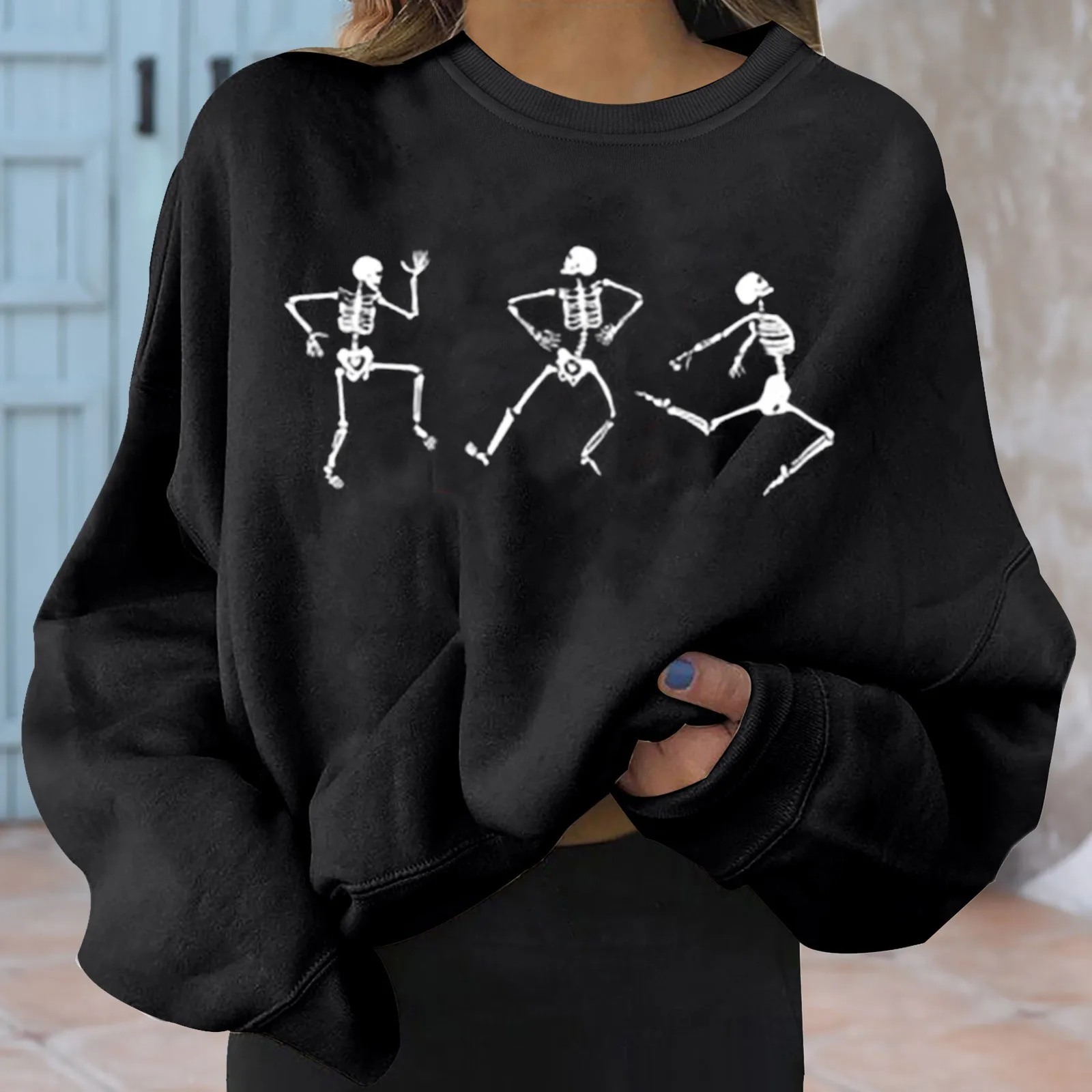 Свитшот женский с забавным принтом черепа, худи с круглым вырезом для Хэллоуина, Свободный пуловер с длинным рукавом в стиле Харадзюку, топы, Moletom, Осень-зима