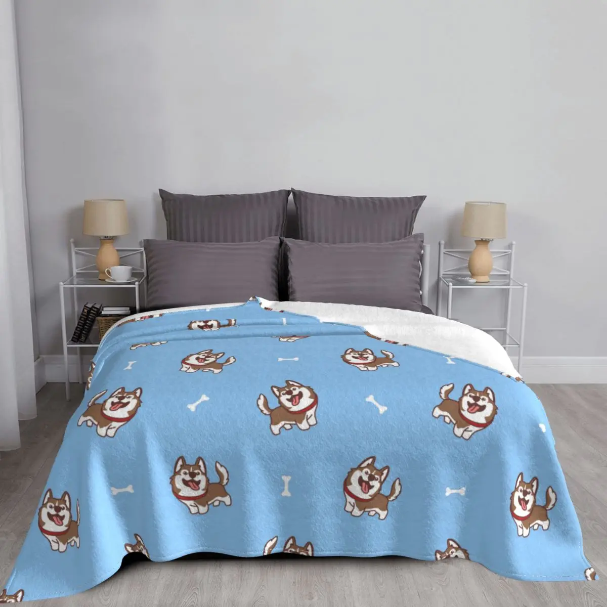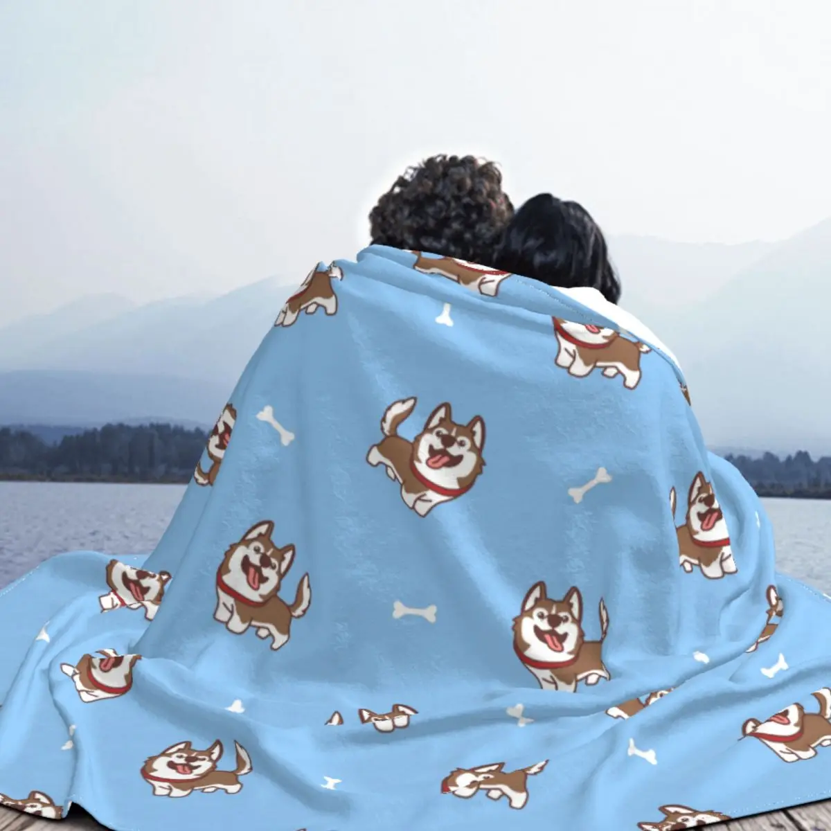 Одеяло с мультяшным рисунком, флисовое теплое покрывало с изображением милой коричневой сибирской хаски для дивана