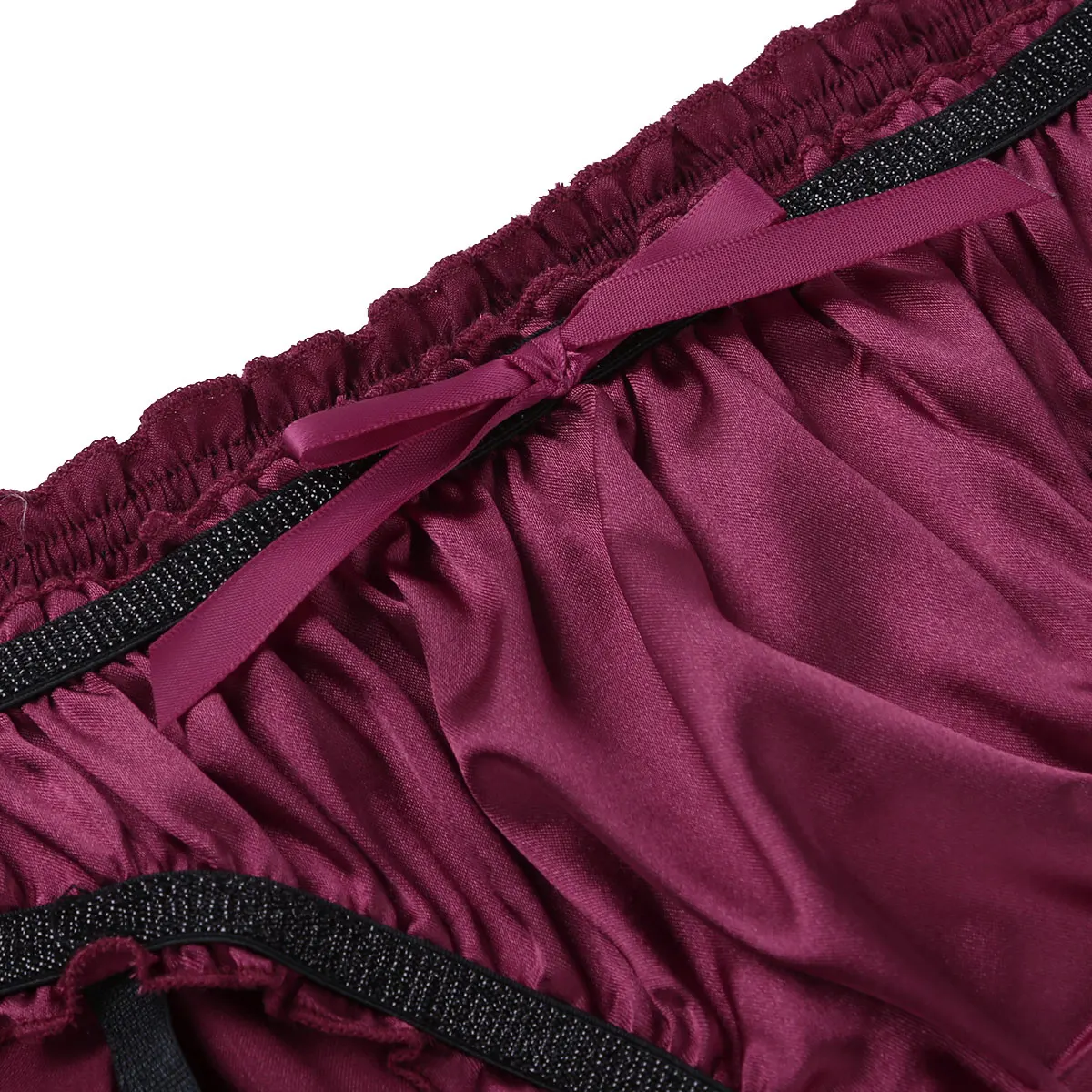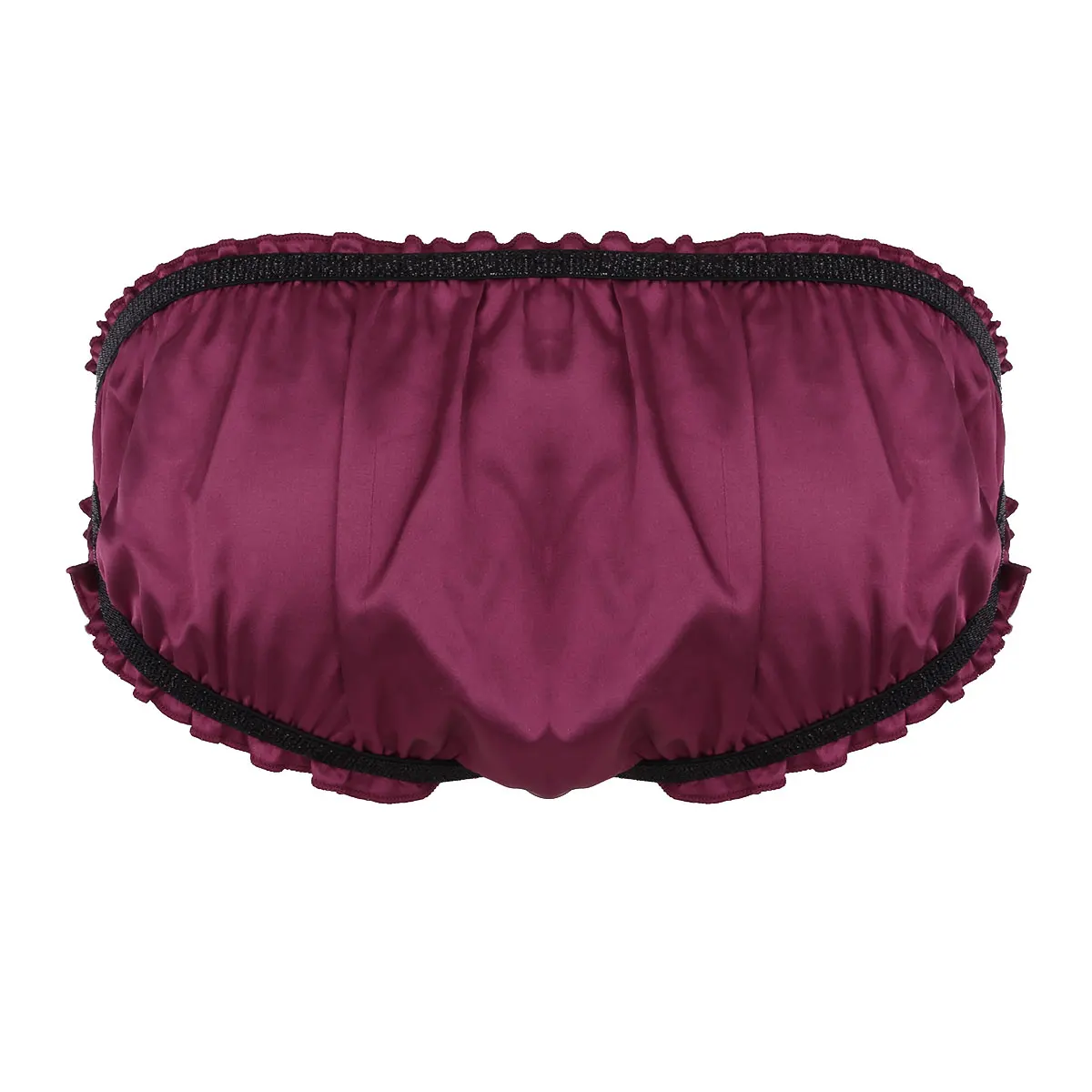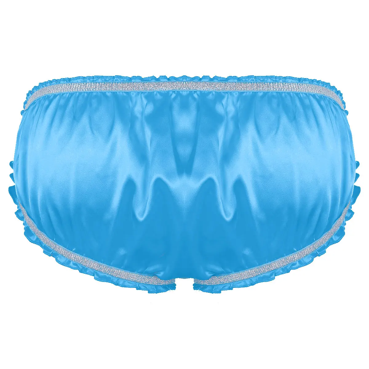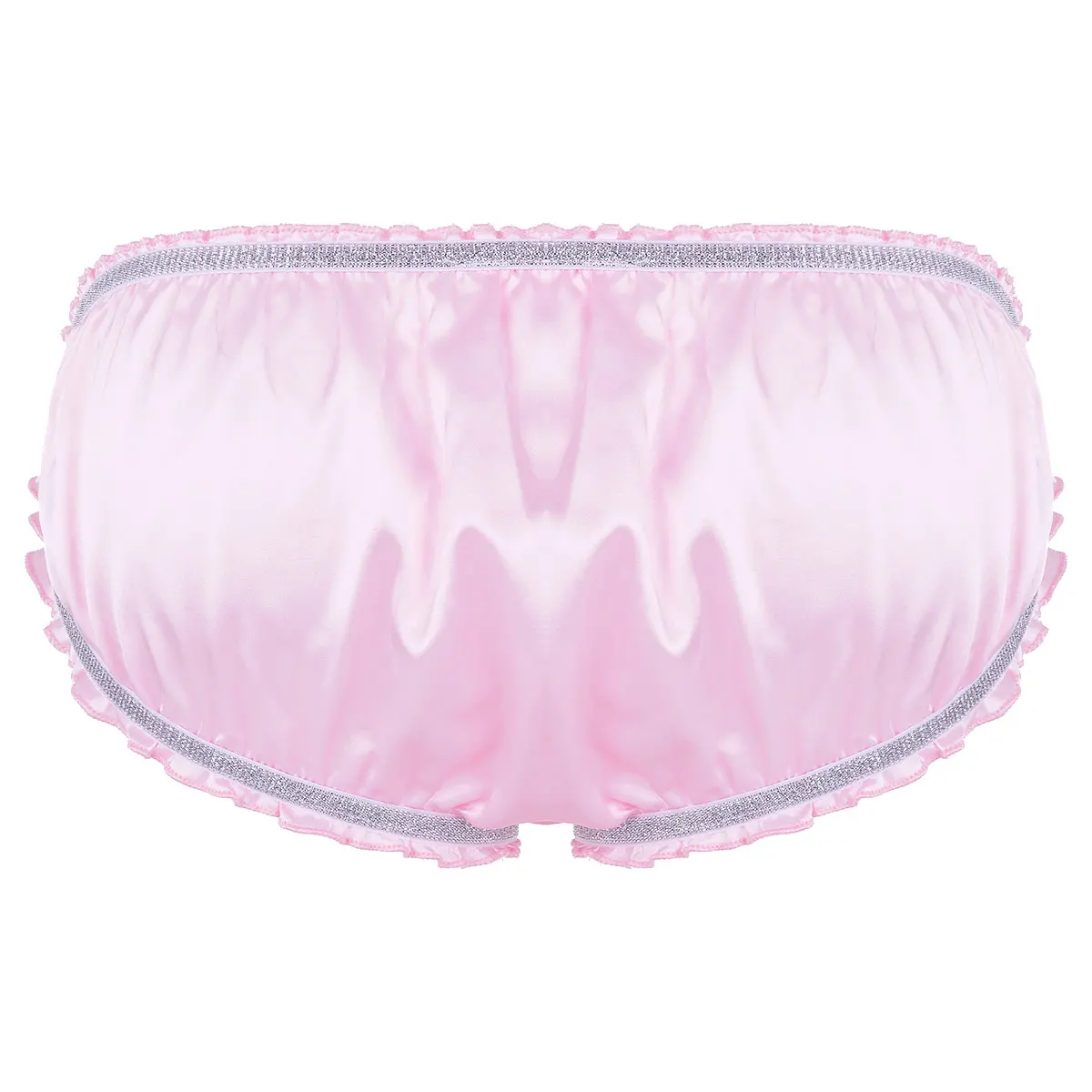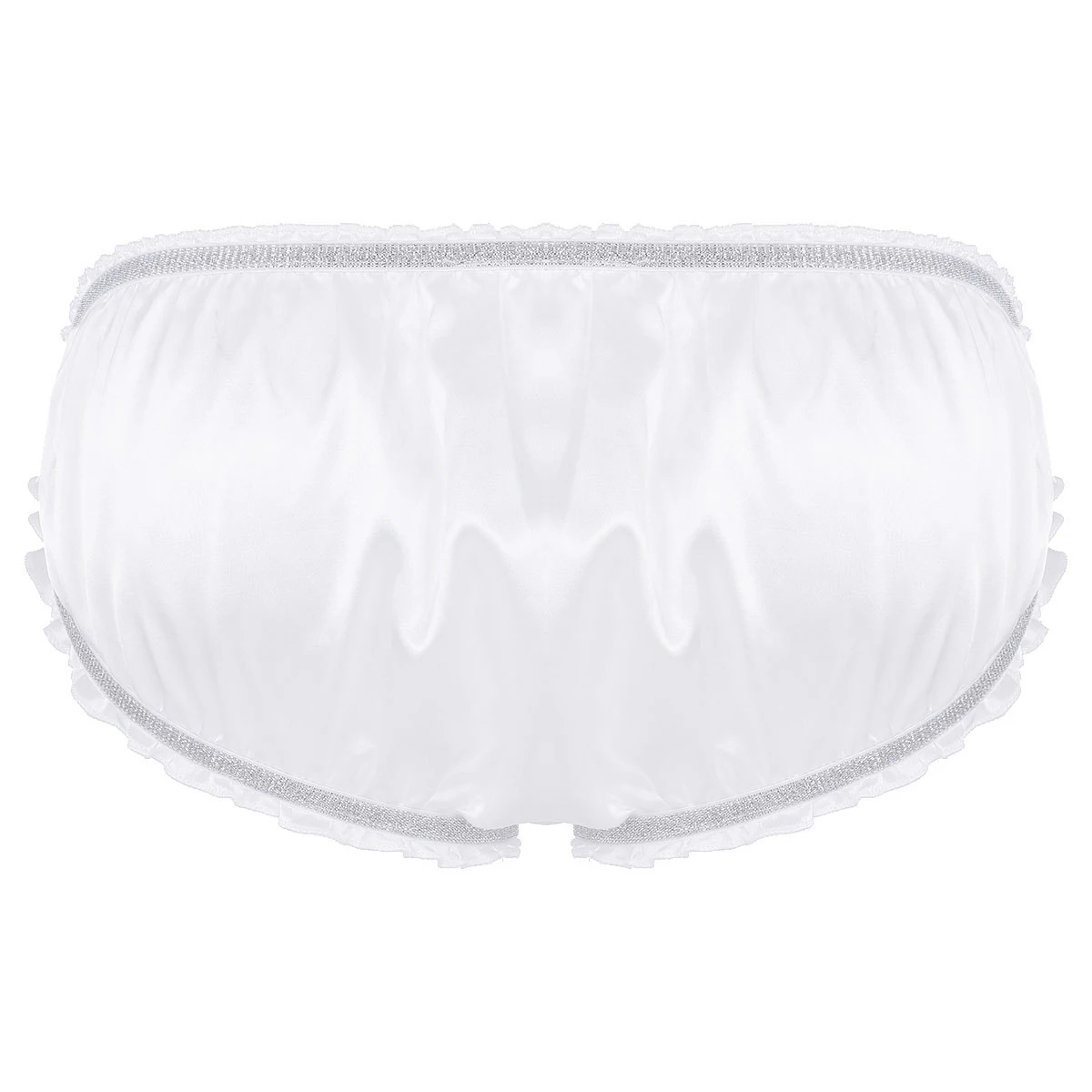Мужское сексуальное нижнее белье, блестящие атласные трусики с оборками и рюшами, брифы, нижнее белье, эротические трусы с подвязками