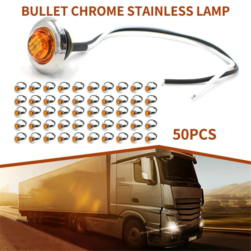 50 шт. 12V 3 светодиодный 3/4 "круглая Янтарная прицепа хромированные боковые габаритные огни грузовики трактора задние габаритные огни пуля нержавеющая Водонепроницаемый