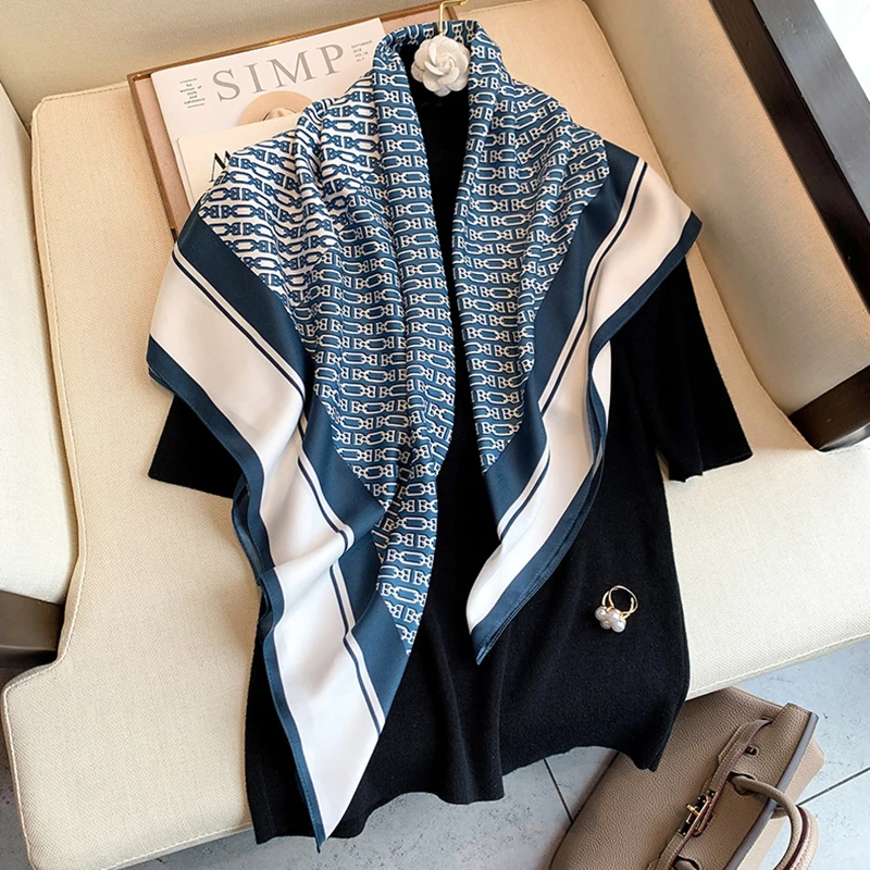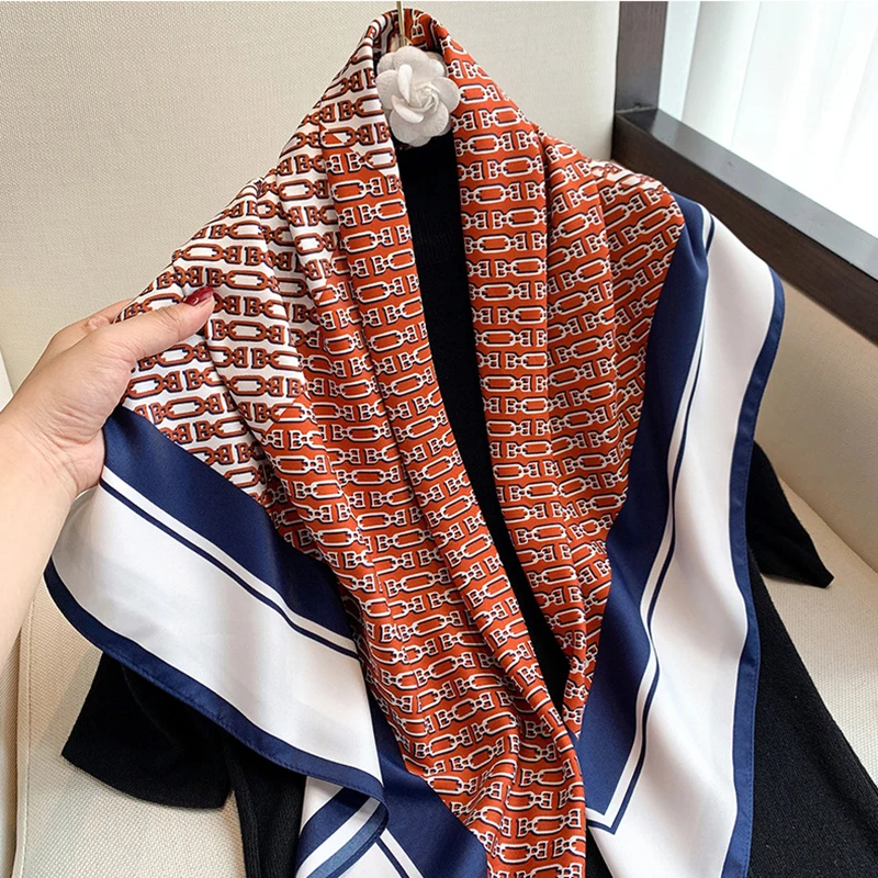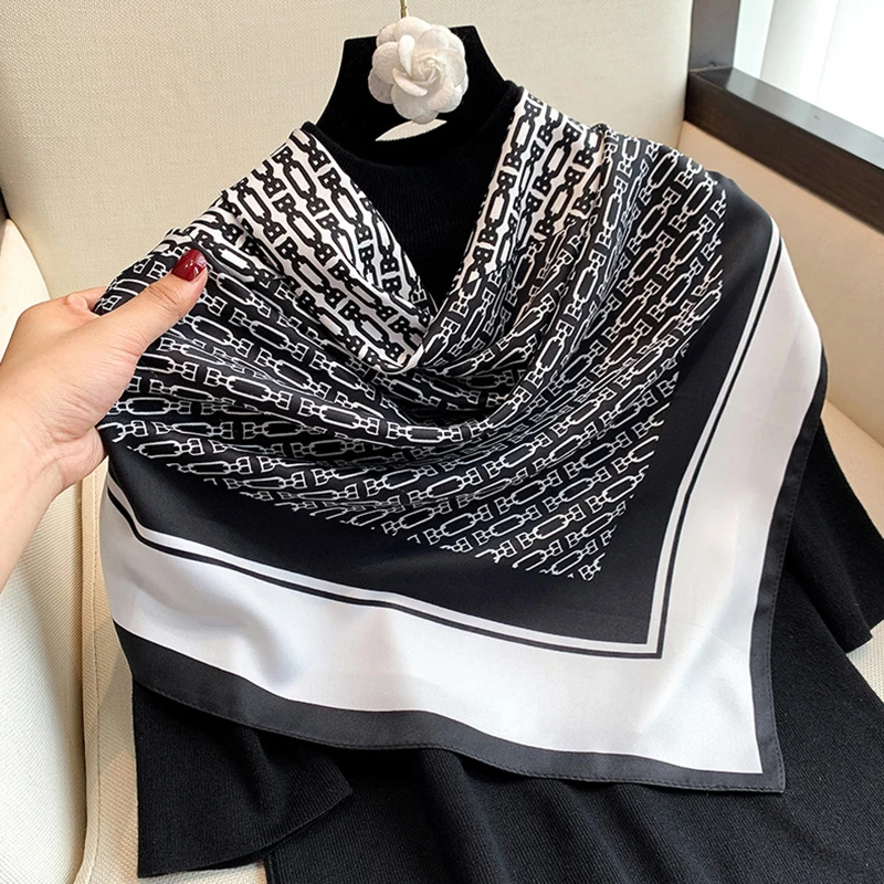 Роскошный брендовый квадратный шарф с фотографией, хиджаб, женская шелковая атласная повязка для волос, бандана, полотенце на запястье, женская накидка, шали