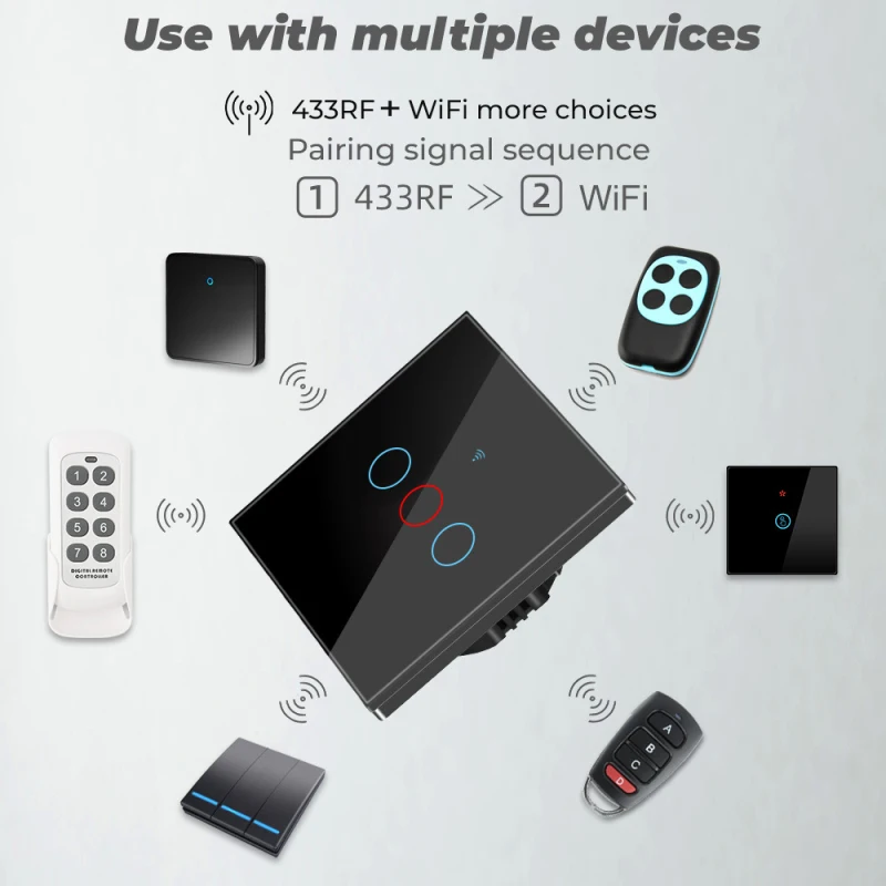 【Четыре метода управления 】 управление через приложение + Голосовое управление + 433 МГц беспроводной переключатель RF + сенсорное управление